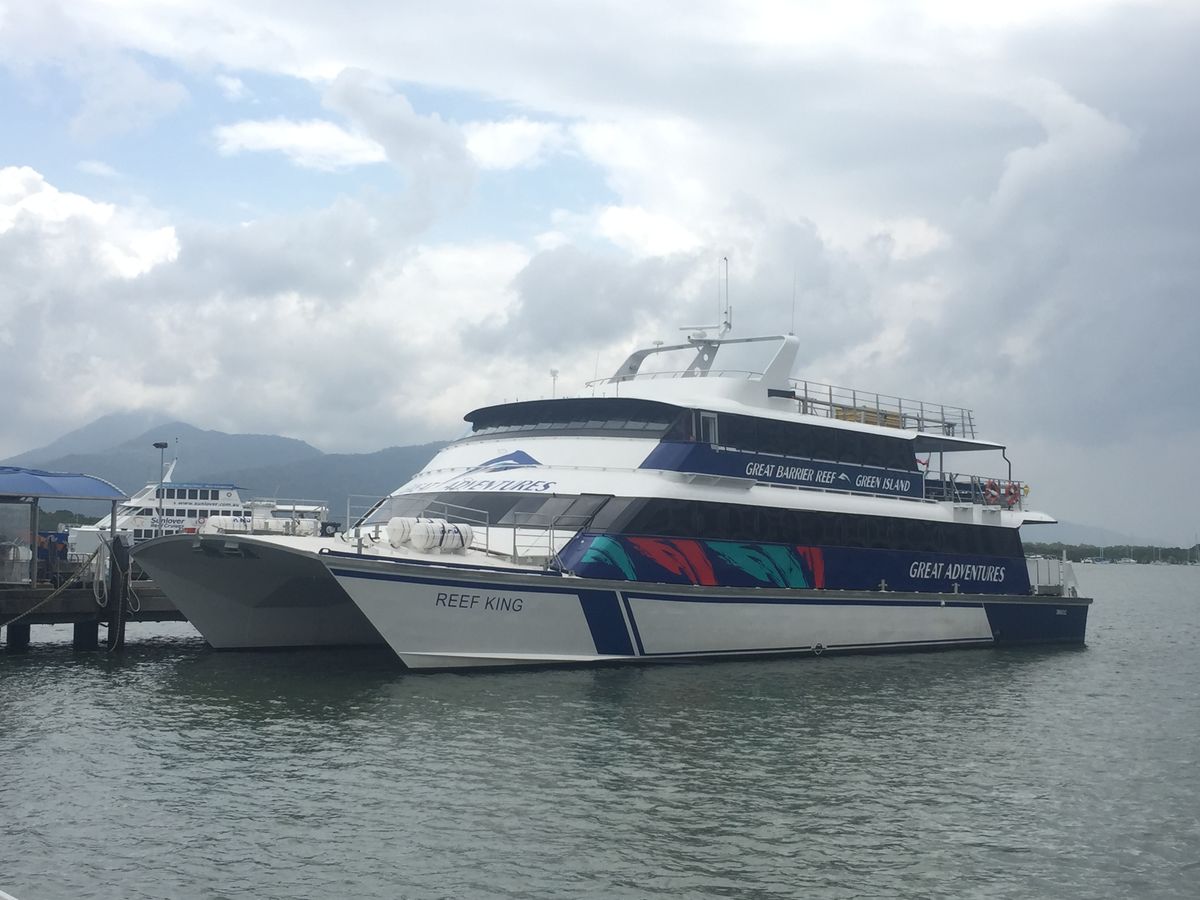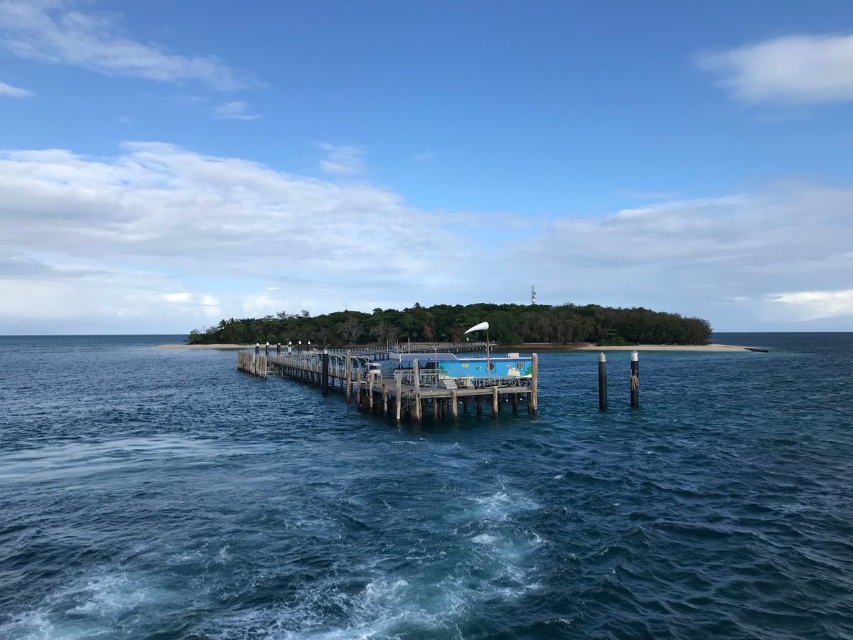 グリーン島まで約一時間。船内はかなり冷房がきいているので、羽織るものを持って行くことを強くオススメします!リーフフリートターミナルでのチェックイン時にシュノーケルセット貸出かグラスボトムボート乗船のどちらかの選択ができ、グラスボトムボートの場合は乗船時間もその時に決められます。シュノーケルセットを持参して、グラスボトムボートを選択するとどちらもできるのでオススメです。グラスボトムボートからは沢山の魚やナマコなども見られてとても楽しかったです!シュノーケルでも沢山魚が見れました!!海も透明度が高くすごく綺麗で感動しました!島内のワニ園は有料なので行けてません。島内のロッカーが出し入れ自由なので便利でした。