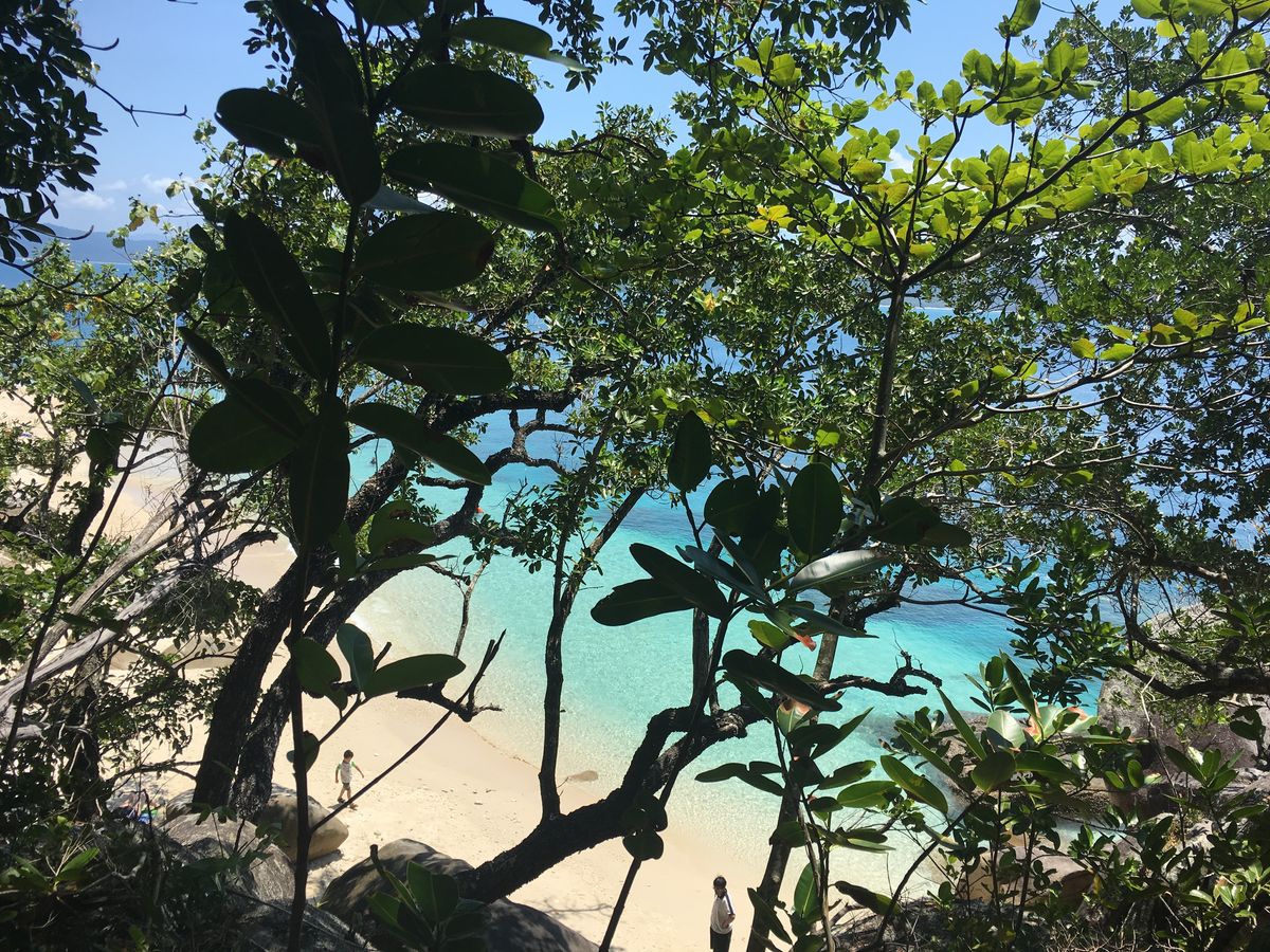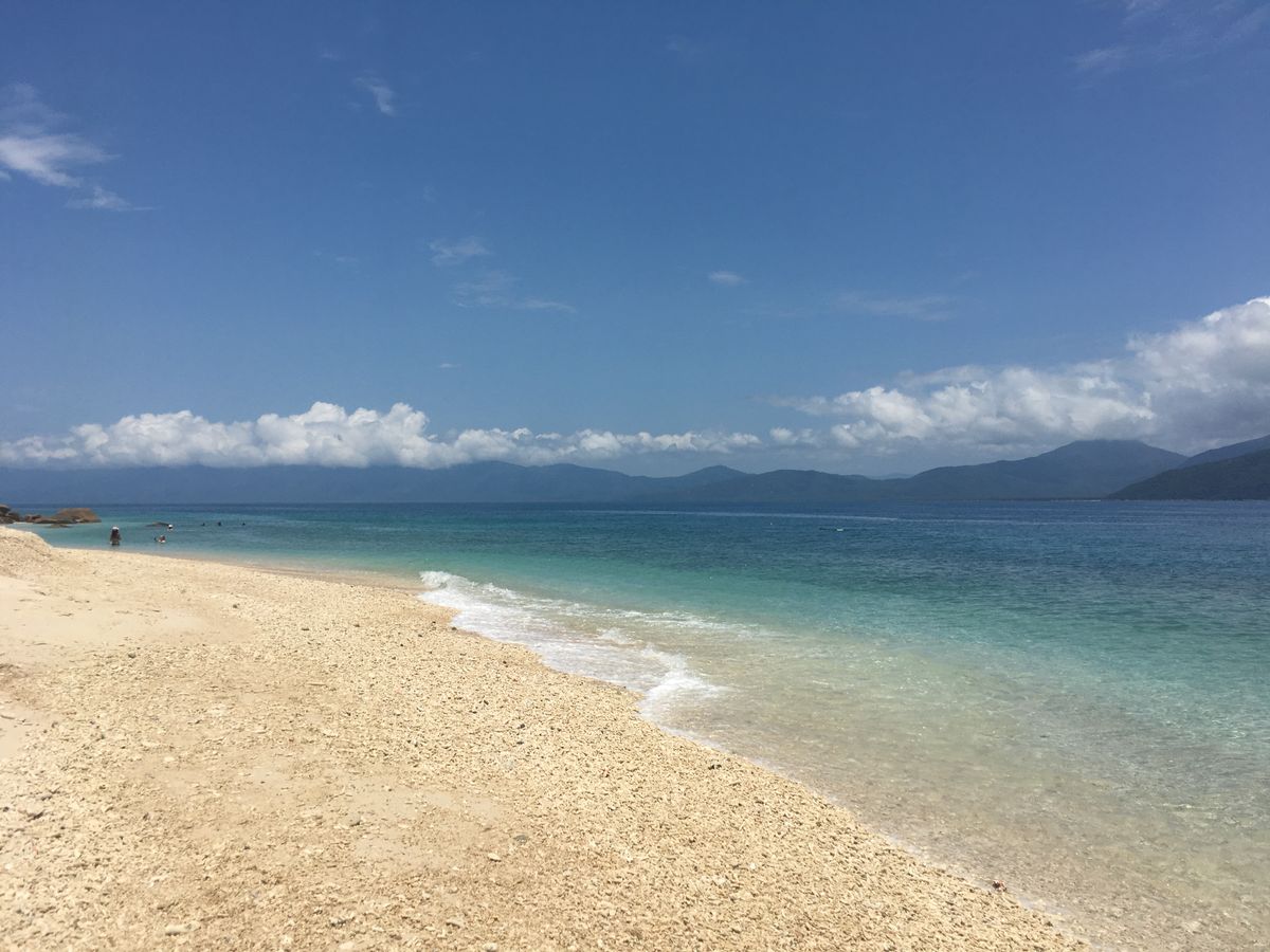 グリーン島のビーチの景色はとっても綺麗でした!他のツアーでセスナ機に乗りグリーン島を上から見たときは、島の周りが茶色く見えて不安だったのですが、実際に行って見るとビーチは真っ青で本当に綺麗でした。
