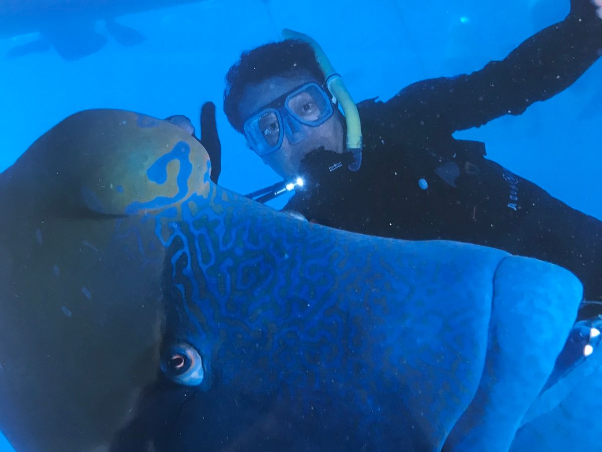ナポレオンフィッシュが間近で見られ、触れるよ!!