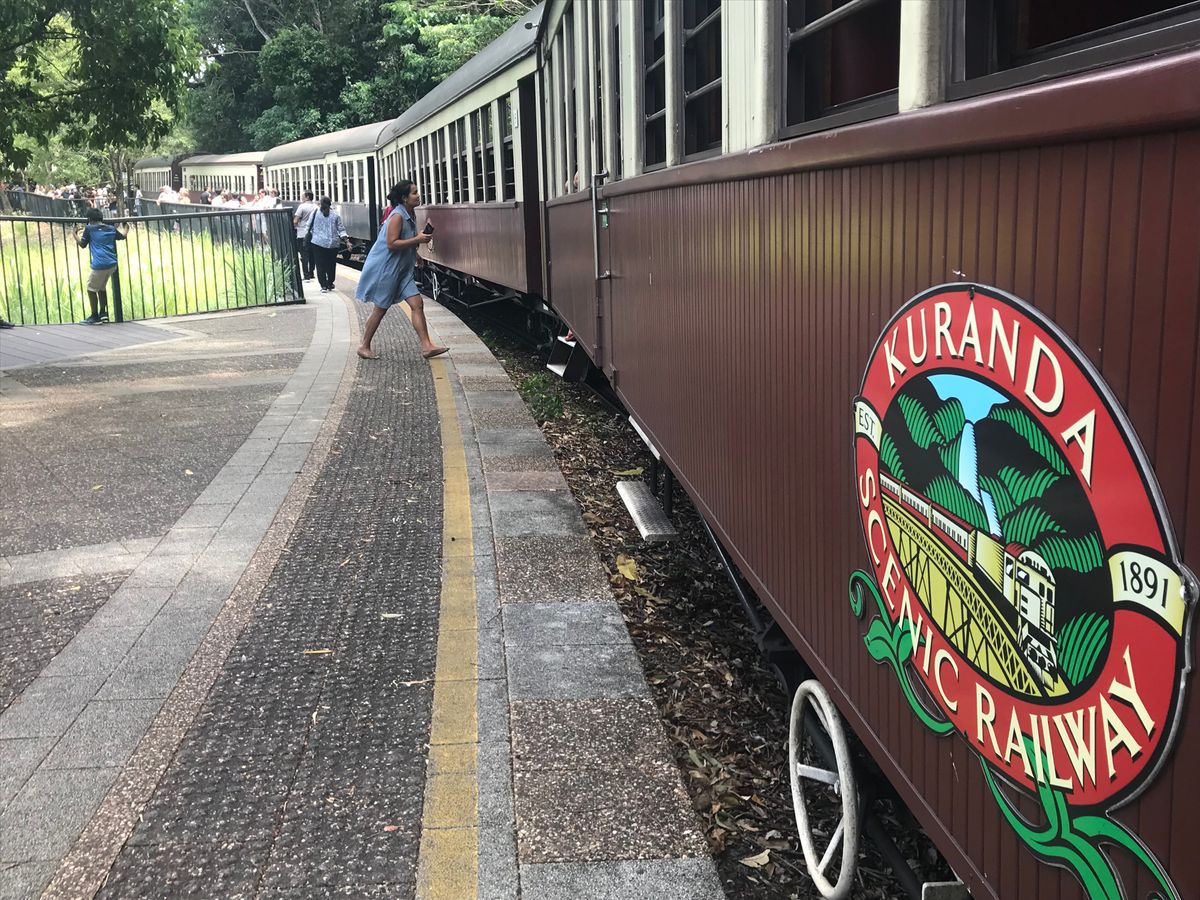 キュランダ鉄道は、無料の水が置いてあるものの水質は不安で飲めない。なので駅のカフェでミネラルウォーターのペットボトルを絶対買った方がよい。2時間ぐらい、エアコンもない鉄道で、見所は途中一旦停止して駅に下車しての滝をバックに写真が撮れることと、(帰りが鉄道の場合進行方向からみて)車窓から滝を右手にみれる場所で左手側の車窓からカーブを曲がる鉄道の全景がみえるということぐらい。あとは只管移動手段だなぁと(^^;;寝ている人も多い。黒部渓谷のトロッコの方が断然素晴らしい。