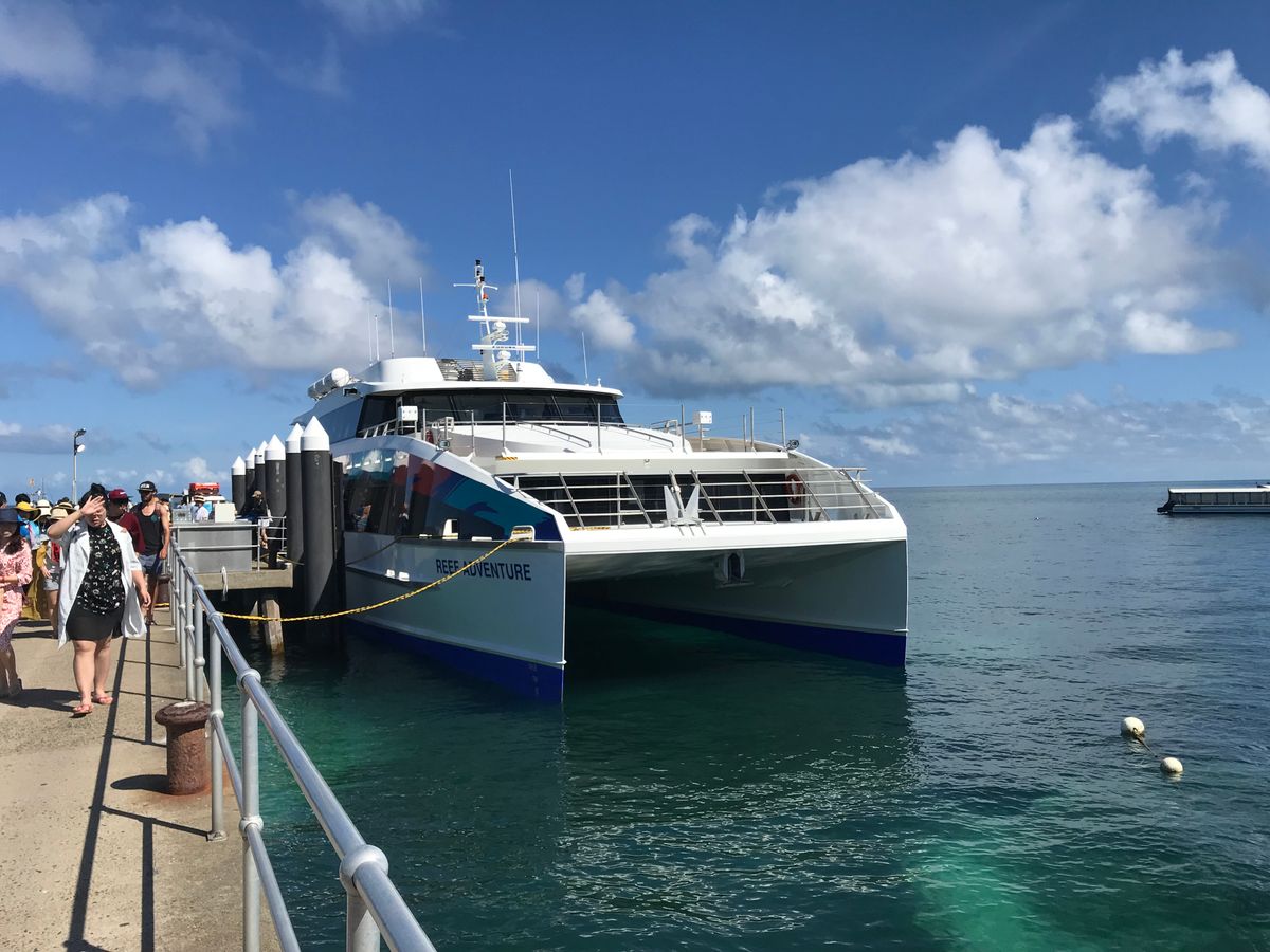 船着き場へ7時頃到着。近くのカフェで朝ごはんを食べました。結構早い時間からたくさんの観光客が集まり船に乗る為並び始めてました。船は少し揺れますが2階の外の席で酔う事なく快適でした。グリーン島へ到着すると桟橋のすぐ下にはたくさんの魚達がいました。早速ビーチへ行くと海も透き通っていてすぐ足元にも魚達がいて、楽しい時間を過ごせました。1時間ほどしてからアウターリーフへ向かう船に乗りました。アウターリーフの船中での食事も美味しく、シュノーケリングをしたり、2階のチェアに寝たりと結構ゆっくり過ごせたと思います。ぜひ参加してみてください、おすすめします。