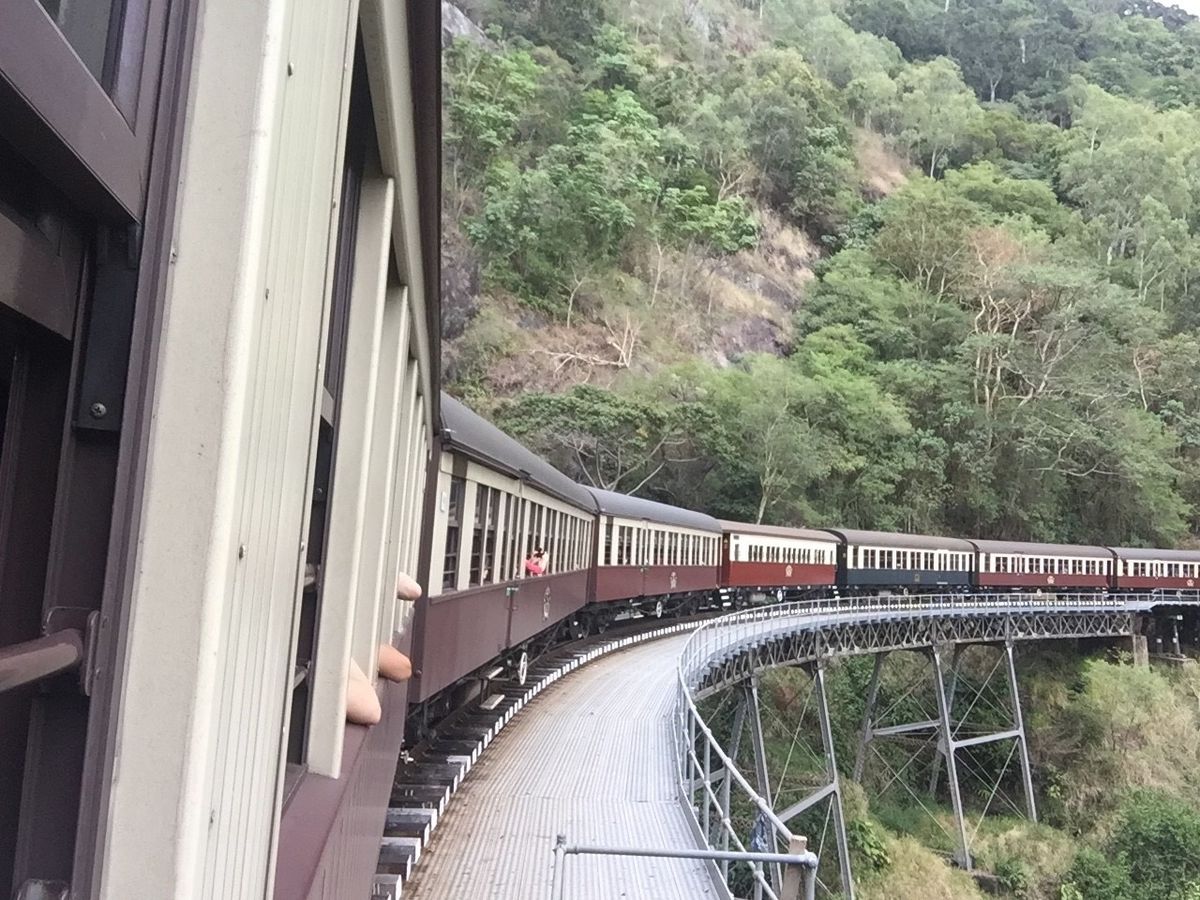 まずはスカイレールから始まり緑緑でほんといい景色でした!3回見れたら幸せになれると言われている青い蝶もたくさん見れました!昼のビュッフェではカンガルーのお肉とかワニのスープも飲めて美味しかったです!列車でもゆったり景色を見ながら過ごしあっという間に2時間経って終わりました!ガイドさんの説明も面白くてわかりやすくよかったです!!