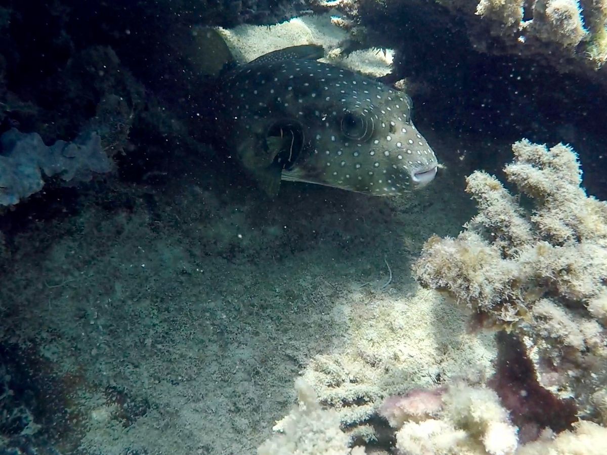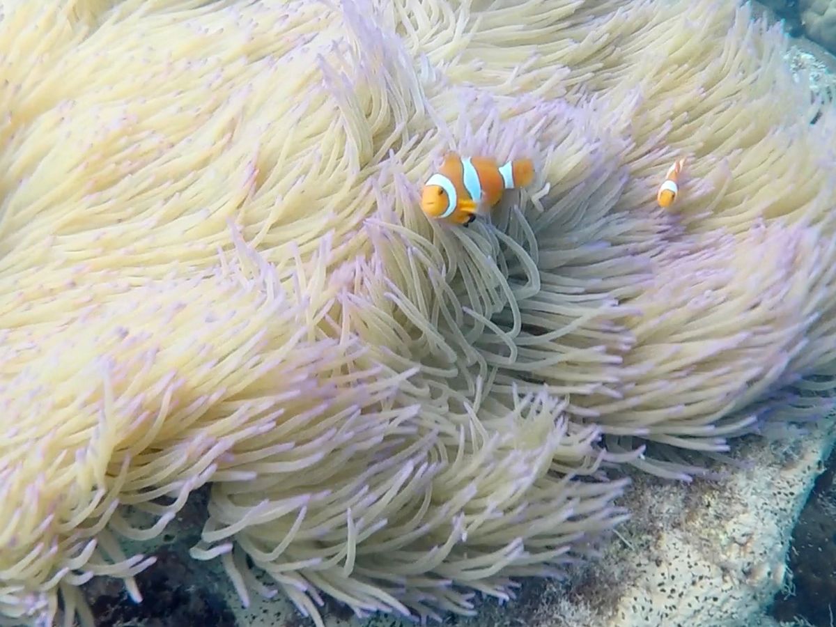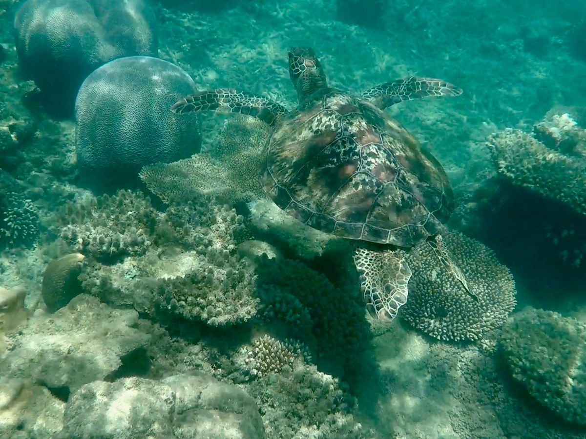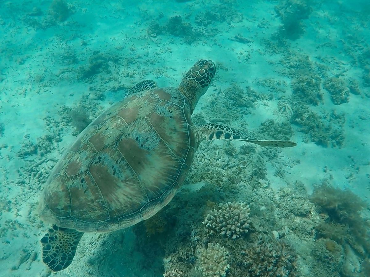シュノーケリングで、カメ・エイ・クマノミ・エンゼルフィッシュに会えました。浜辺から直ぐ近くにカメが泳いでいて、いつも朝から昼にかけて餌を食べに来るみたいです。