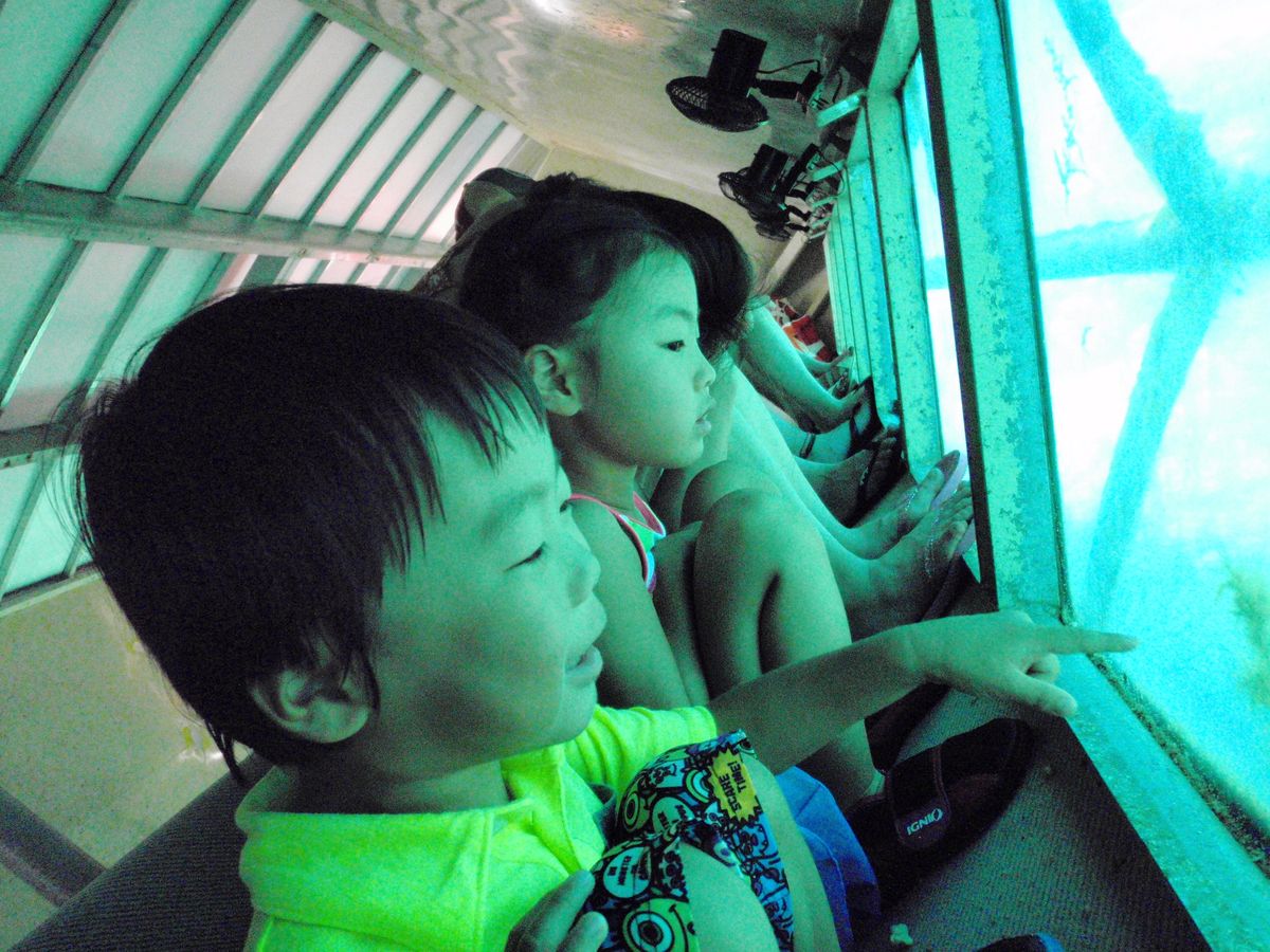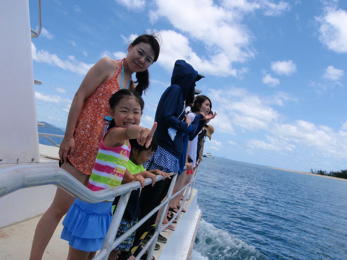 島に着いてからは、グラスボトムボートにのりました。台風のあとだったからか、10月末の春という季節だったからか、浅瀬に小魚がみられなかったので、沖に出て小魚を見せたいなと思い皆で参加しましたが、亀が優雅に泳いでるのが見られ、ニモやドリー他にもたくさん見られ、子供もお〜〜!とはしゃいでいました。