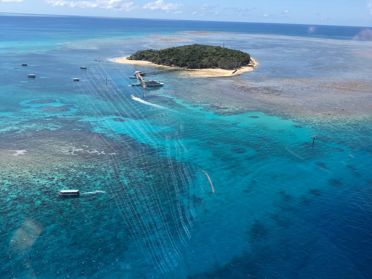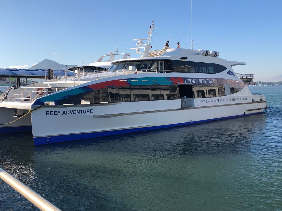 ターミナルで受付を済ませて、船の出航まで、近くで待って、船に乗り込みました。ターミナルの受付から、乗船まで英語がさっぱりなのですが、スマホのバウチャーをみせるとどこに並んだら良いか、どの船に乗ったらいいかなど誘導してもらえて問題なしでした。思いがけず、グリーン島への往路でクジラに遭遇して、ラッキーでした。グリーン島に着いて、ヘリコプターを予約していたのですが、船の中でどこに集合で、何時からなど教えてもらいました。1時間ほど遅れてのヘリコプターでしたが、その空いた時間でクロコダイル園を見にいけて良かったです。上空からのグレードバリアリーフは、素晴らしかったです。家族一致で今回のケアンズ旅行の一番でした。グラスボート、シュノーケルをして盛りだくさんのツアーでした。