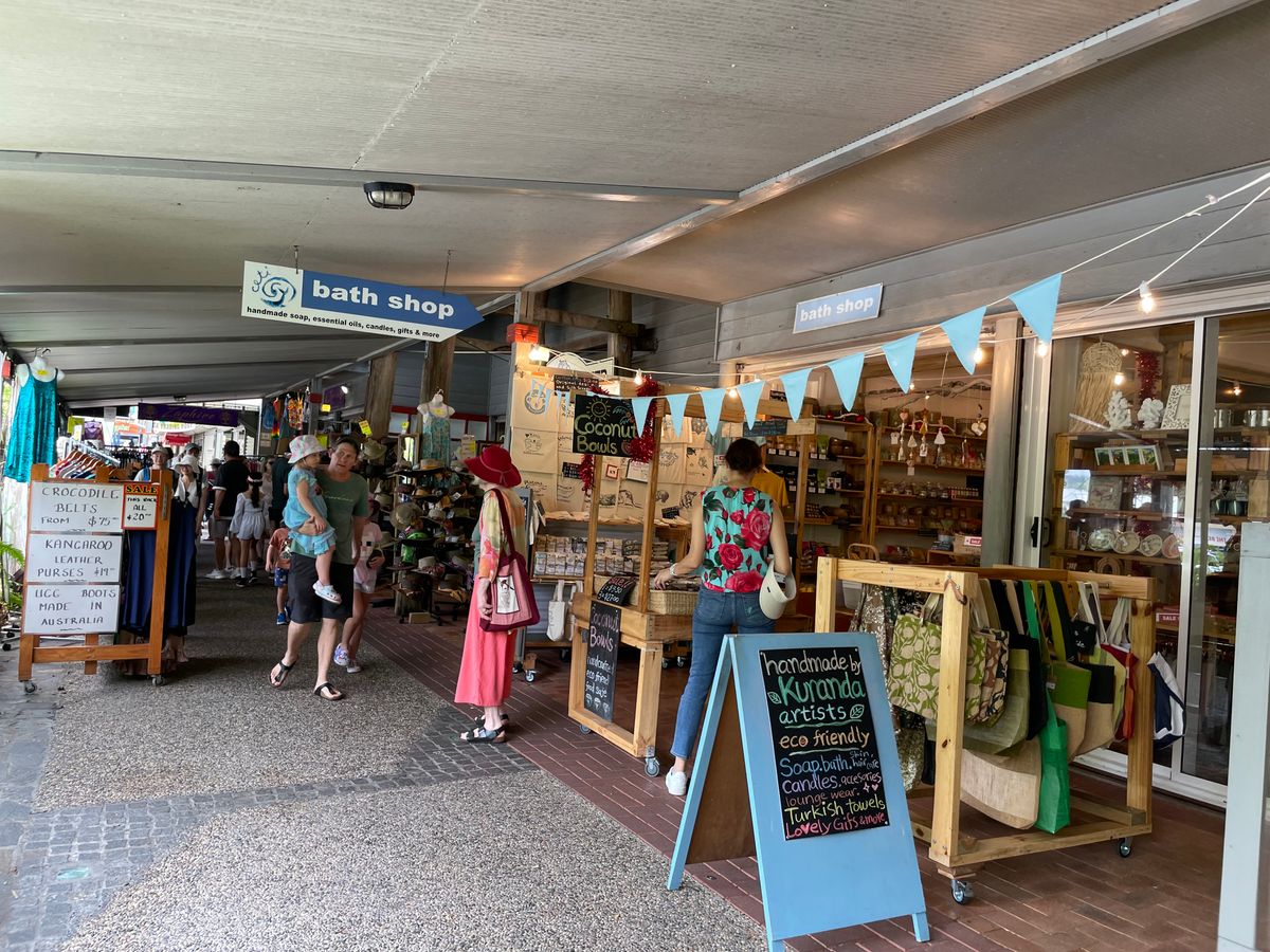 小学生の息子と二人で参加しました。宿泊先には時間通りにスカイレールデザインのバスで迎えにきてもらいました。乗車されてる中で日本人は私たちだけでしたが、特に問題なくスカイレールの駅まで送っていただけました。チケットは直前にメールで送られてくるので、乗り場で見せるだけでした。キュランダに到着後は、いろいろな土産店やカフェがあり列車出発まで休憩と買い物を楽しみました。キュランダ観光列車は3人席が向かいあっている座席でしたが、私達は進行方向を向いて窓側から2席を確保いただいてたようで、大変眺めも良かったです。列車は満員で、私達の車両は日本人が少なく韓国をはじめアジア人がほとんどでした。キュランダ駅までは世界の車窓からの景色を窓をあけて楽しみました。小学生の息子も大満足のツアーでした。帰りはケアンズ駅で解散ですが、少し歩くと大型ショッピングモールのKマートがあり、さらに徒歩でケアンズ中心部まで戻れるのでありがたいです。