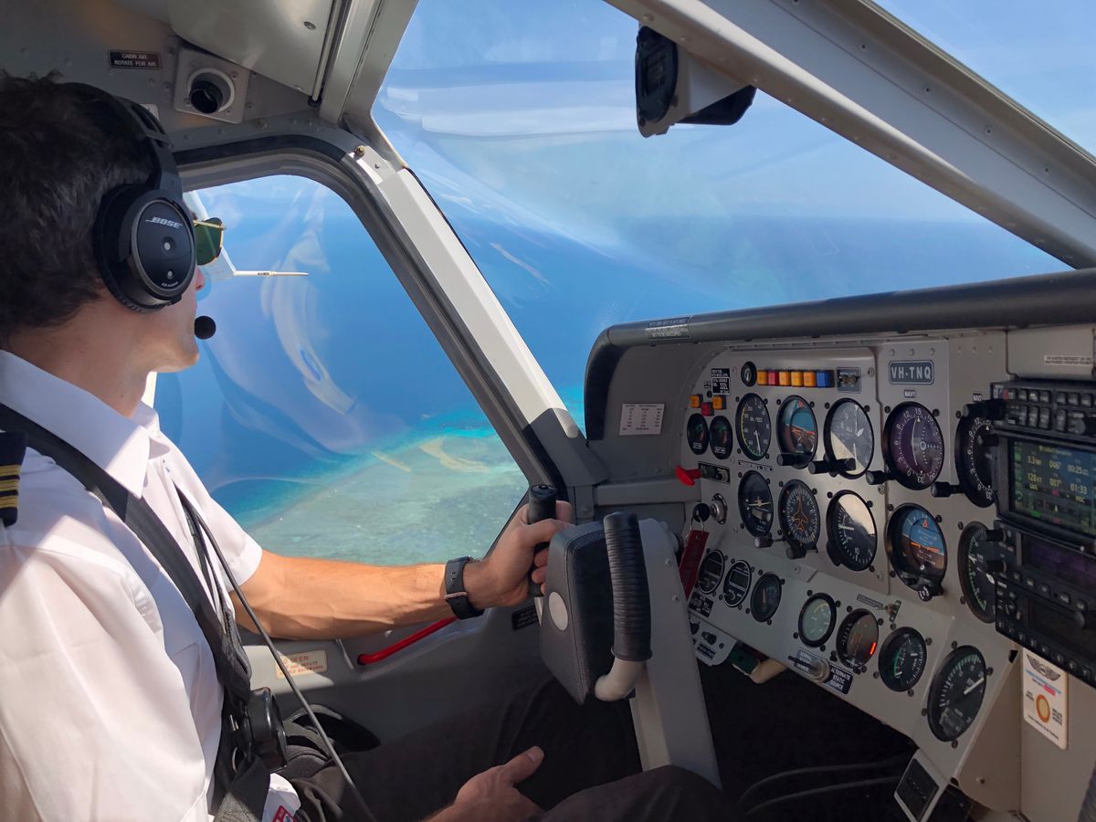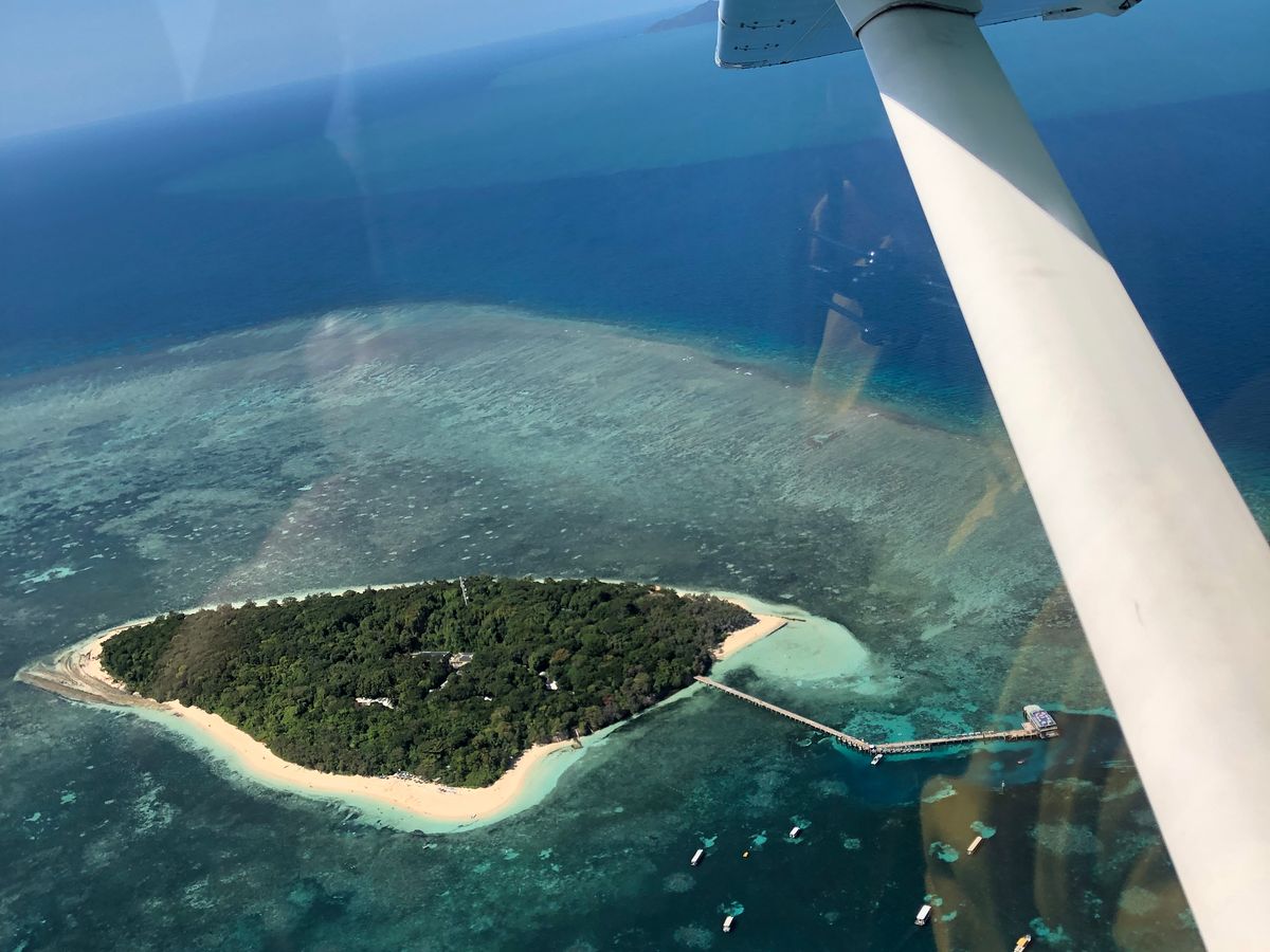 朝9時過ぎ、滞在中のホテルまでワンボックスで迎えに来てくれて、セスナ専用の空港へ行くと思いきや、国際線も離発着するケアンズ国際空港へ。まずはお部屋で待機して、浮き具等の安全に関する説明を事前に受けます。その後、普段は入れなさそうな入口から空港内へ入り、セスナの前まで移動して、その場で座る座席が決まります。私はパイロットの隣、車で言う助手席に座って景色とセスナとパイロットを満喫してきました!このアクティビティーの前に船でグリーン島へ行ってきましたが、やっぱり空からの景色の方が美しかったです。島の景色も良いんですけどね。このフライト、楽しかったですよー!でも、ピックアップから搭乗中の安全の説明、フライト中の説明など全てが英語になるので、予めご留意を!でも、わからなくても大丈夫。私は楽しめましたから!!パイロットとの記念撮影、お忘れなく!