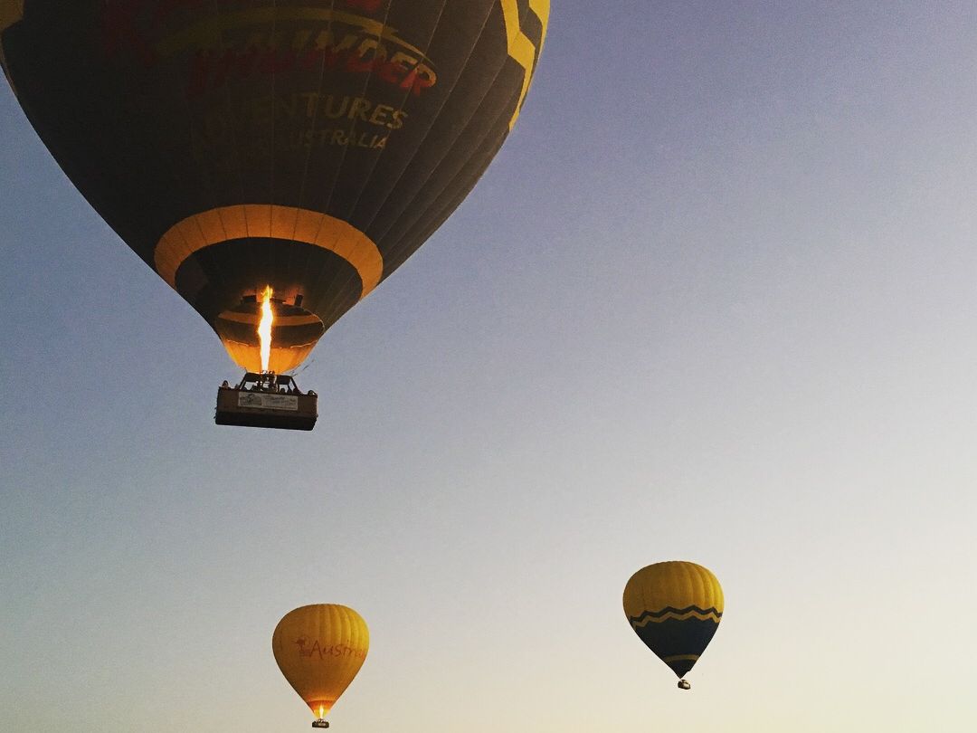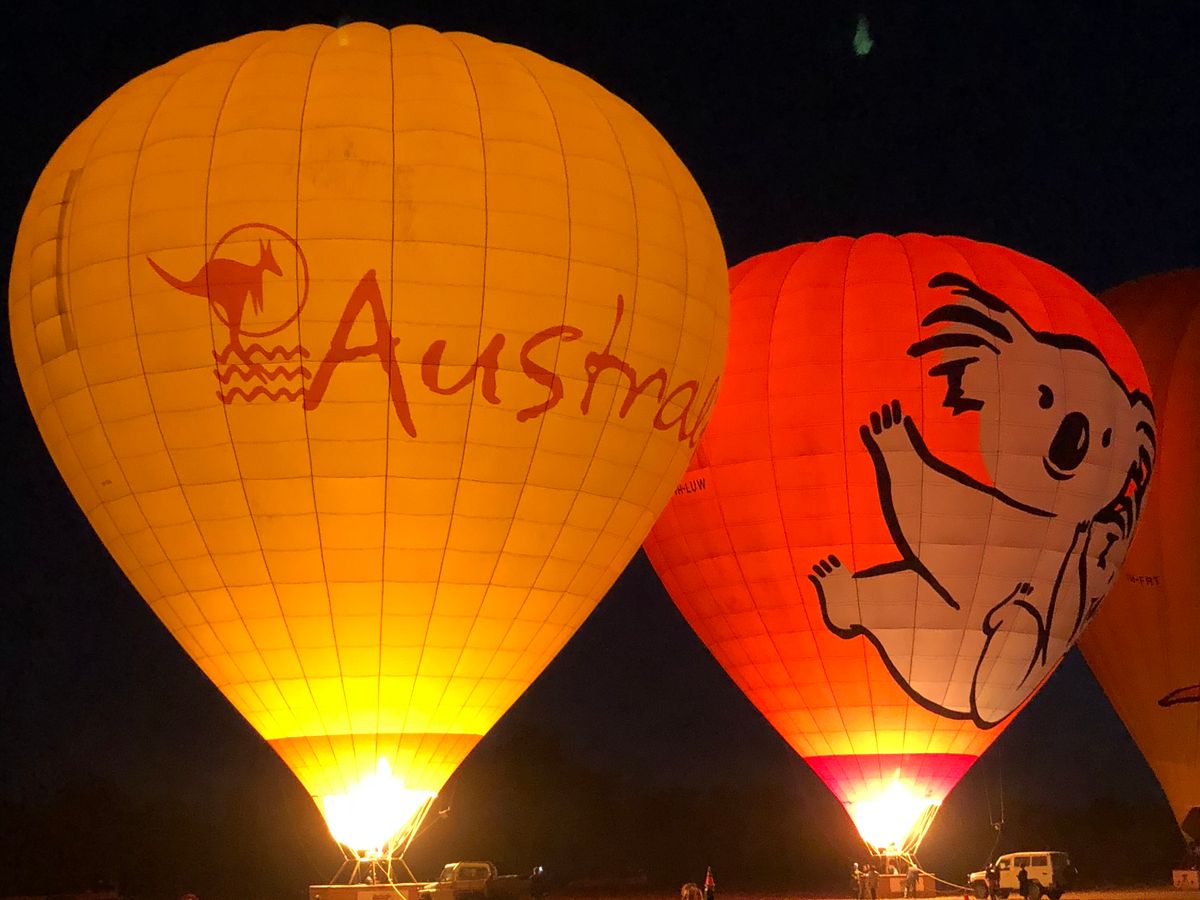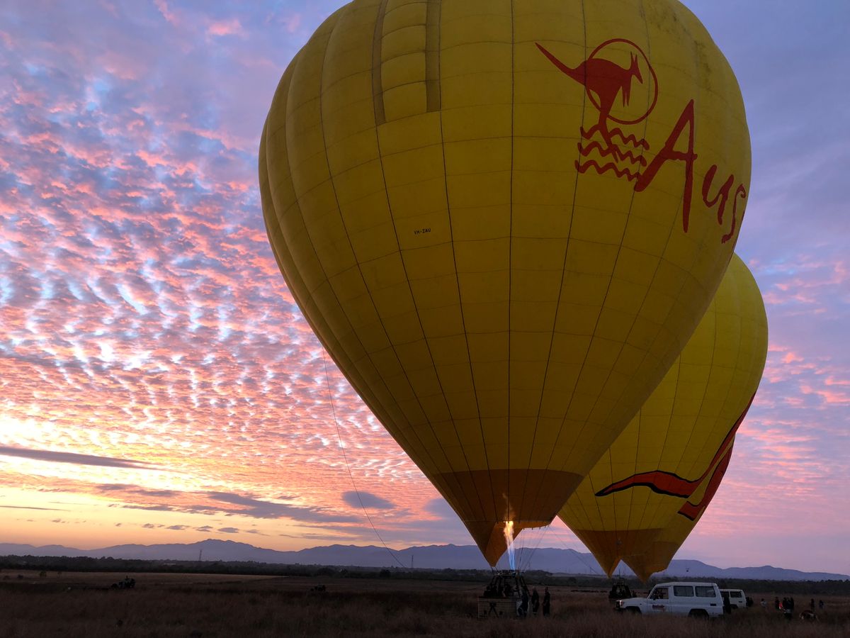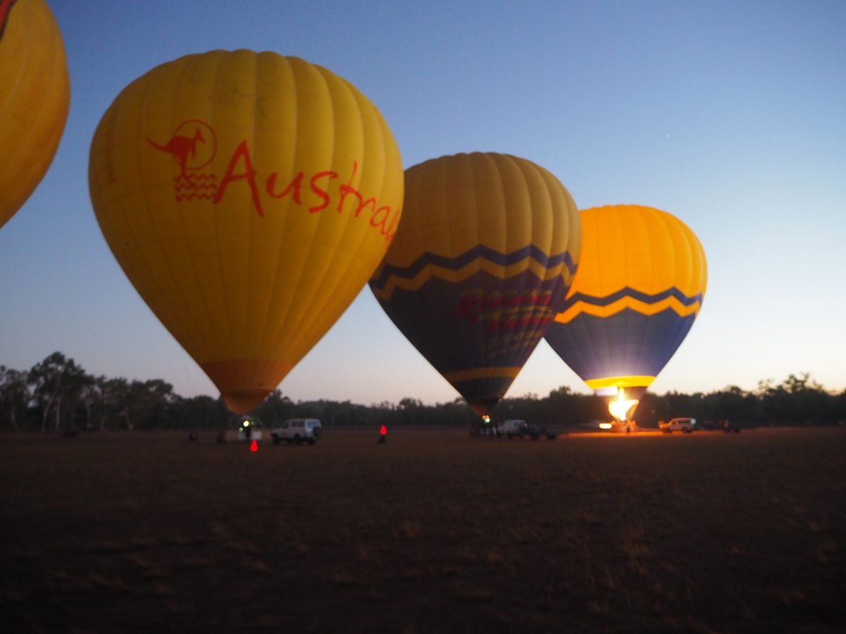 初めての熱気球体験、高所恐怖症の私は拒否してたのですが、娘の強い希望でびくびく参加しました。4時20分ホテルお迎えで1時間弱位バスに乗り、着いた広い高原のような(暗くてよくわからなかった)場所に降りると 黄色やオレンジ色の想像していた以上の大きなバルーンが数個並んで準備していました。口コミで寒いと書かれていたので、ライトダウンジャケットとヒートテックと薄手のセータでちょうどよかったです。1つに20人乗ったバスケットが軽々スーと上空に。前半と後半に分かれて 私たちはラッキーにも前半だったので、素晴らしい日の出に遭遇できました。下を見るとカンガルーがいて、とにかく感動の方が大きくて、高所ダメな私が大丈夫でした。ただ着地に失敗してバスケットが横倒しになり、そこにトラックが迎えに来るまで待つという、これもまたハプニングで思い出の体験となりました。