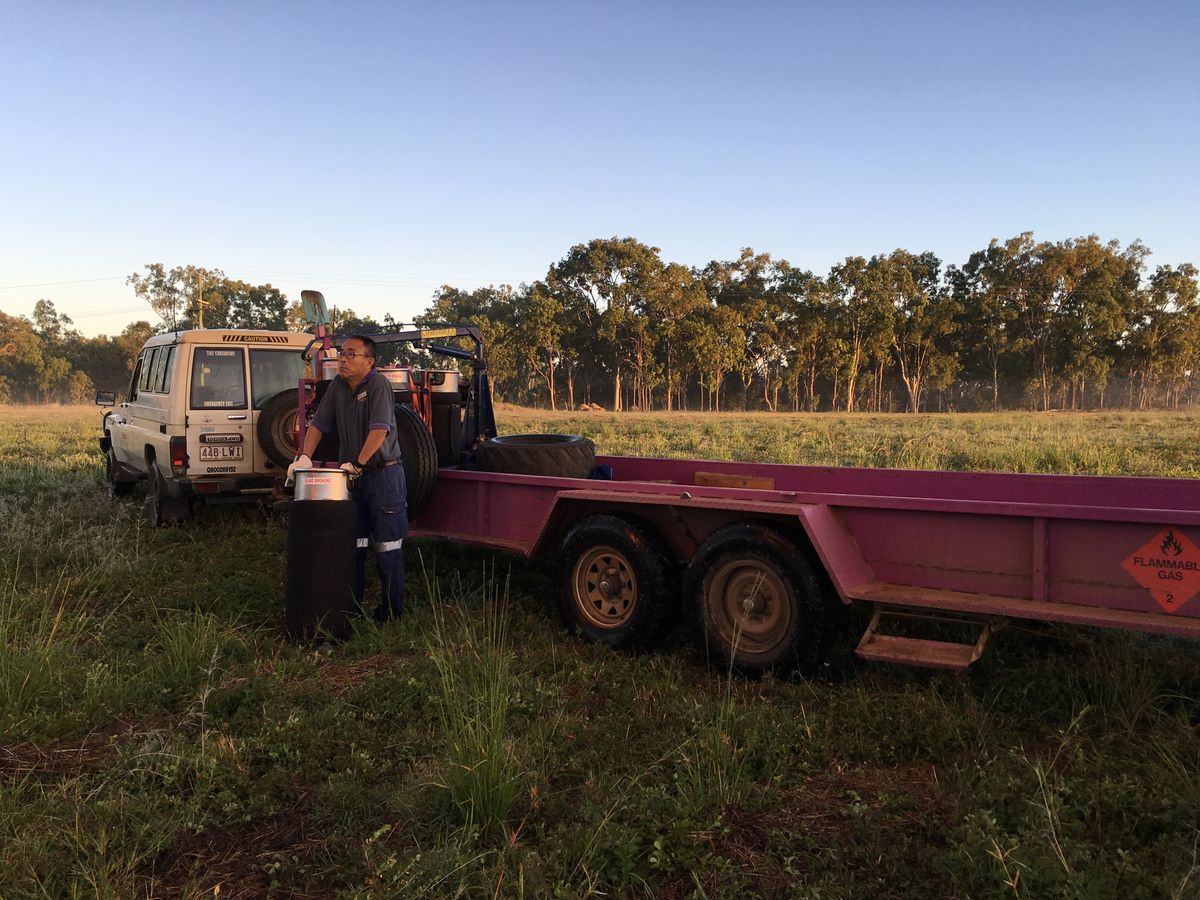 ケアンズ市内を出て、まずは巨大アリ塚 へ。向かう途中の車窓から遠くに野生の砂ワラビーが小さく見えました。