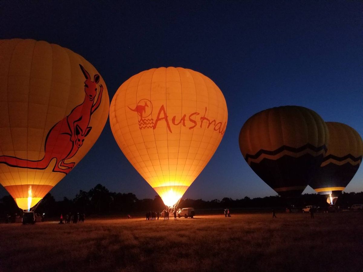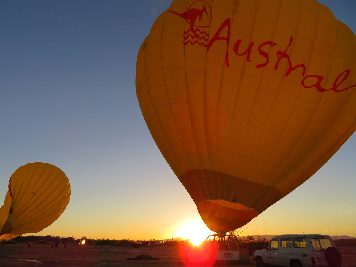 初めてのオーストラリアで初めての熱気球でした。ドキドキでしたが日本語ガイドさんなので安心して参加することが出来ました。30分のフライトを2回行ううちの、私たちは2回目に割り当てられたので日の出を見ることは出来ませんでしたが、壮大なオーストラリアの大地は感動ものでした。天候にも恵まれ、大地も空も美しかったです。2回目のフライトに割り当てられた人は、スタッフの方とともにフライト後に気球の片付け作業を行いました。気球に直接触れ、素材の薄さに少し驚きました。余談ですが、私たちのフライト時は日本人、中国人は全員2回目のフライトでした。
