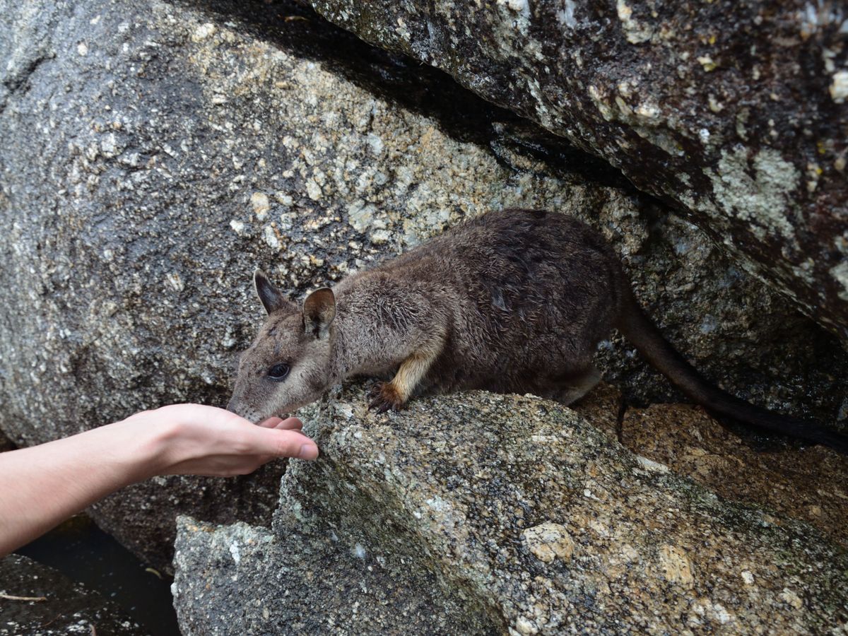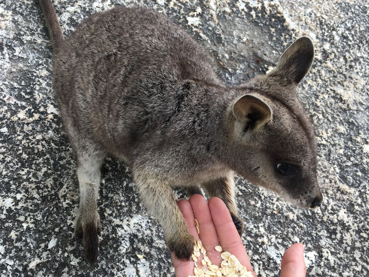 雨季で、前日までの豪雨の関係でバスがぬかるみにはまってしまったり、カモノハシは小雨の中、茶色い川を流れて行きました。天候の関係もあり大変なこともありましたがスタッフの機転も利いていて全体的に楽しませていただけたツアーでした。ドライブしながら、野生の動物を見たり、ロックワラビーに餌付けしたり、念願のカモノハシやカンガルーが見られたり、とても幸せな時間でした。ロックワラビーは手から餌を食べてくれたり、腕やひざに手をかけておねだりしてきたり、とてもかわいらしかったです。カモノハシが見てみたいというのがオーストラリアを訪れた主な理由のひとつであったため、2匹も見られてよかったです。次は天気のいい日にまた参加できればと思っています。