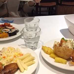 また、このツアーで出される食事(朝食代わりのマフィン、ランチ、おやつ?のケーキとクラッカー・チーズ)は、海外のツアーで提供されるものの中ではレベルが高く、食事もおいしく頂きました(娘はエビを6匹も食べていました)。ブログによく出ているフィッシュ・フライは見かけませんでしたが、ラタトゥイユやポテトサラダもおいしく頂きました。唯一、???だったのはスパークリングワインが振る舞われたときのソフトドリンクで、スタッフの方から事前に説明がありましたが、まさにかき氷のイチゴシロップを薄めたような味で...。下戸の私には、飲み物が水だけと言うことに。これをおいしいトロピカルフルーツのジュースか何かに変えてもらえれば...。