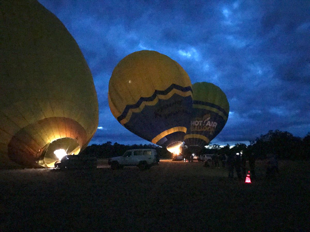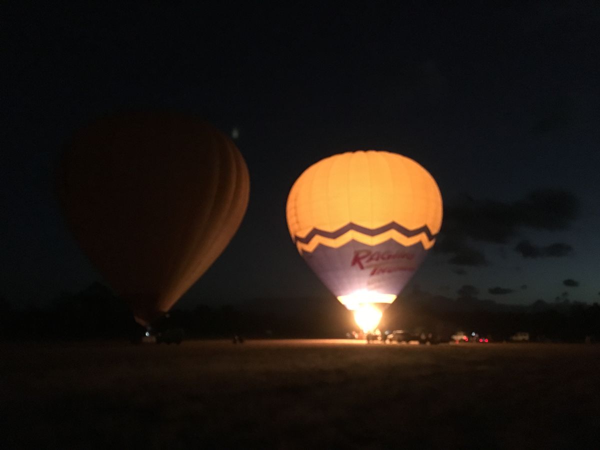 早朝に日本語のスタッフが迎えに来て下さいました。バス内で安全に関するビデオを見ます。それ以後は寝てても大丈夫です。暗闇の中気球が膨らんでいく様子は見物でした。気球の操縦は英語のみ話される方でしたが、時々冗談を行ったり気球を木にかすらせたりと面白い方でした。上空2600フィートで風を感じながら見る朝日は絶景でした。降りる場所にもよると思いますが、靴やズボンの裾は本当に汚れますのでお気をつけ下さい。