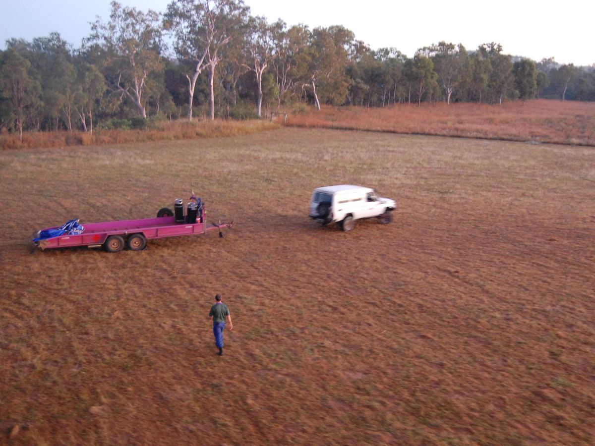 降りる場所もその日の風向きと風速で決まるみたいで、民家がある空き地に着陸しました。