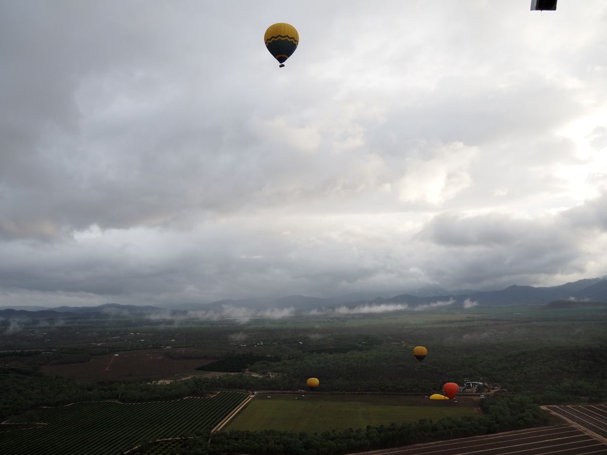 ケアンズ市内を出発した時は雨、行く途中も雨でフライトが中止になるのか心配しましたが、丁度雨も止み、初の熱気球フライト。