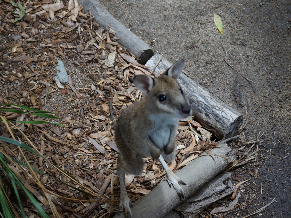 列車に乗りキュランダへ、スカイレールに乗り麓におり、バスで再びキュランダへ。全てのルートから熱帯雨林を楽しんだあとは動物探しへ出発。多くは見れなかったけど黒鳥におなかの中にいるロックワラビにと珍しい動物達が見れました。