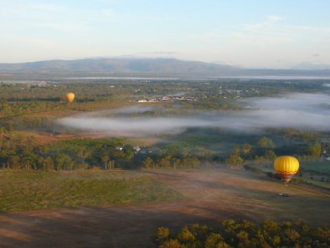 高度を上げていくと、向こうの方にケアンズの市内が見えたり、ゆらゆら移動しているとカンガルーがいる(はず。残念この日は見つけられませんでした)森の上やら気球が映り込む川の上やらを通り抜けます。 早いんでしょうけど、高いからか、怖いとも感じなかったし、揺れる感じもなく、朝の景色をめいっぱい堪能できました。