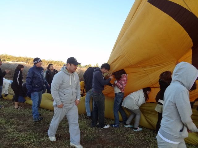 出発地点へ到着すると何にもない、広大な大地の中に、いくつもの気球が並んでおり、膨らませる場面は迫力満点。