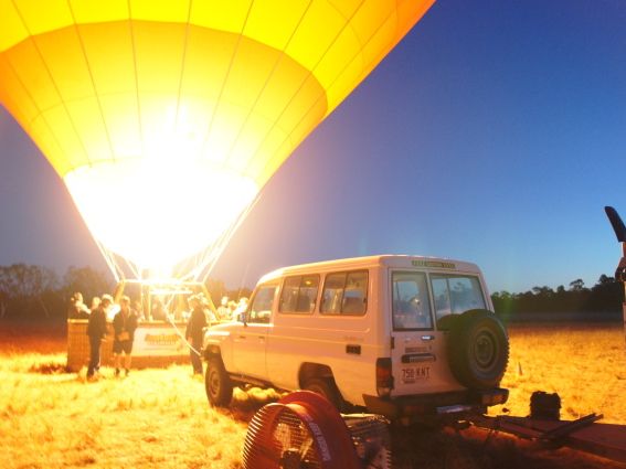 6月半ばに参加したのですが、お迎えの時間は真っ暗でした。移動している間も月も星もよーく見えていて、マリーバに着き、気球を起こしているのを待っている間に段々夜が明けていきました。