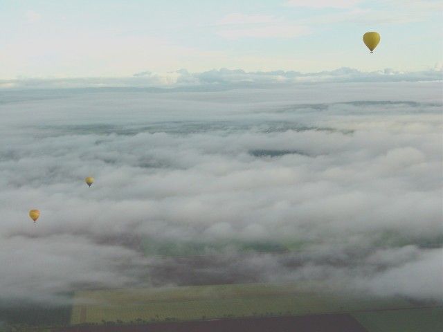 気球は今回が2度目で、友達と参加しました。1月2日のことです。今回もお迎えが遅れて置いていかれたかとひやひやしました。早朝、いろいろなホテルを回るので遅れるのでしょう。朝食が遅いので、何かお腹に入れて、出来ればトイレも済ませておくのがお勧めです。ただ、子供さんの場合、長時間はもたないので、草むらでしちゃうという手もあります。今回は後のフライトだったので、先に車で気球を追いかけました。その後、前半のチームと入れ替わりに気球に乗り込みました。深い霧の中、何も見えないのではと思いましたが、雲海ならぬ霧の海の上へ出て、横に移動したので下界も見えてほっとしました。気球につり下げられたカメラが写真を撮ってくれるのですが、自分たちでお互いの写真を撮るときには、フラッシュを焚かないと真っ黒に写るのでご注意を。後ろの空の方が明るいからです。私は籠の真ん中近くに乗ったので、バーナーの火が暑かったです。でも、寒がりな人は長袖の上着は着た方がいいと思います。バナナ畑やマンゴー畑を越えた農場に着地し、牛に注目されながら気球をたたみました。これがなかなか重労働で、女性が多いと大変です。こんなふうに片付けるのかと面白い作業でもありますが。大抵、草原で行うので、靴は必ず運動靴がいいです。スカートもこの作業に不向きだし、籠に乗り込むときにみっともないのでNGです。これが終わると後はバスで朝食会場へ行きます。カメラマンや気球につり下げられたカメラで撮った写真が朝食会場で売られています。高いですが、写りがいいときには、記念にはいいと思います。CDロムでも売っています。シャンパンを飲みながらお腹いっぱい朝ご飯を食べると幸せな気持ちになります。午前中で帰って来られるので、午後は別のアクティビティに参加できます。私は乗馬に行きました。