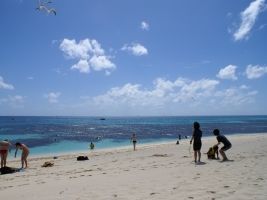今回参加したのは、30名くらいでしたので、ほとんどプライベートビーチ状態で、とてものんびりすごせました。日本人スタッフがいるので、英語が話せない方でも安心して参加できると思います。シュノーケリングだけでかなりの魚もみれますので、小学生さんくらいのお子さんのいる家庭向けです。浮き輪も貸してくれますから安心です。私個人はダイビングをしましたが、季節のせいか以前アウターリーフでダイビングをしたせいか、魚が小さくてちょっとものたりなかったです。