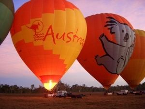4時15分にピックアップ予定でしたが・・10分過ぎても迎えが来ず「朝が早いので誰かが寝坊しているんだなぁ」と思い、のんびり待ちました。牧場に到着すると気球は膨らんでおり、轟音を立てながらバーナーで浮き上がろうとする瞬間でした。薄暗い中でのバーナーの光はとても綺麗で、牧場ですので牛の糞を気を付けながら何枚もの写真をデジカメで撮りました。私たちは後半組みでしたので、舞い上がる色とりどりの気球を見ることが出来、後半組で良かったと思いました。その後、自分たちが乗る予定の気球をバスで追いかけ、いざ乗り込んで見ると狭いのにびっくり、上空からカンガルーも見れたしオーストラリアの平原を満喫出来ました。スタッフもユニークで楽しかったです。貴重な体験をありがとう!