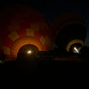 9月の前半に行きました。気温は、早朝だったので、少し肌寒い程度で日本の春の早朝と同じくらいだと思います。私は暑がりなので、半袖に薄手のカーディガンを羽織るくらいでしたが、5歳の子供には薄手の秋に着るくらいの薄い長袖と羽織を着せて行きました。朝早くて心配だったのですが、移動のバスでぐっすり寝てくれ、気球に乗る場所に着いたら目がパッチリさめてすごく楽しんでいました!最後に気球を畳むお手伝いが出来た事も子供にとってすごく印象深い経験だったみたいで今だに話しています(^^)月が沈むのと朝日がとても綺麗でした!とても大きな気球で乗り心地もすごく良かったです。気球を降りた後に軽食を頂いたのですが、フルーツがオーストラリア産でとても美味しかったです。カットしてないフルーツにかぶりつくのが初めての子供はビックリしながら、初めてフルーツにかぶりついていました!オーストラリアの文化にも触れられて良かったです(^^)