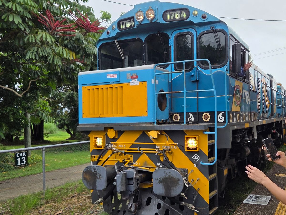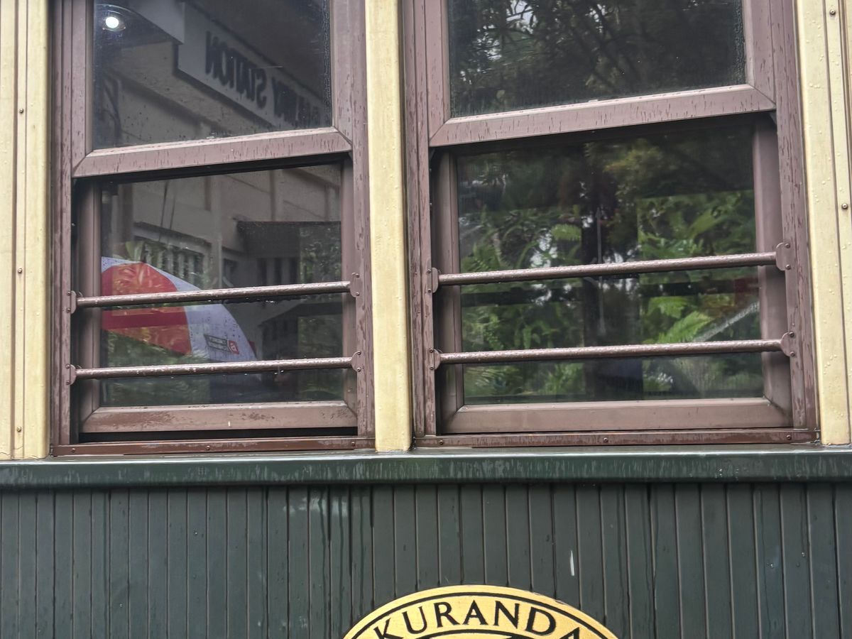 ただし、キュランダ鉄道が倒木の影響で大幅に遅延しており、当日のスケジュールの都合上、残念ながら乗車することはできませんでした。その代わり、発車前に長時間停車していた車両で、車内外ともにゆっくり記念撮影ができたのは良い思い出になりました。