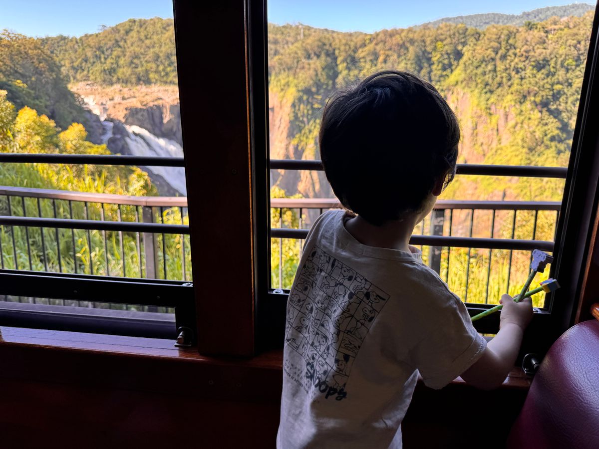 サイクロンが接近しており、キュランダ鉄道は運行中止で、往復スカイレールになりました。当日に復路の鉄道のキャンセルが決まりましたが、往復スカイレールにスムーズに変更してもらえたので、不自由なくツアーに参加することができました。スカイレールの途中、レッドピークとバロンフォールの両方で途中下車(レッドピークは乗り換えの駅なので皆下車する)しましたが、どちらも5-10分で満足できました。