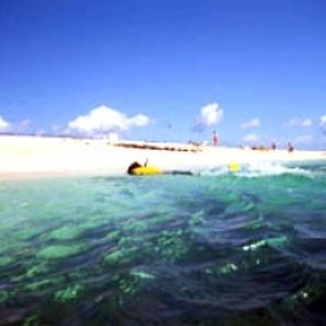当日は晴れていてクルージングは揺れもあまり感じず、とても快適で、みんなデッキで水着姿で寝転び、日焼けを楽しんでいた。風が強かったために島には降りられず、近くに停泊してそこからシュノーケリングやダイビング、潜水艦で海中散歩などして各々楽しんだ。島は遠目からしか見られなかったが、白くてとってもきれいだった。ガイドの話から、島に降りられれば、鳥にえさを与えたりすごく楽しそうだ。客層は、欧米人が8割、日本人は2組くらいしかいなかったが、ガイドには日本人がいたので良かった。