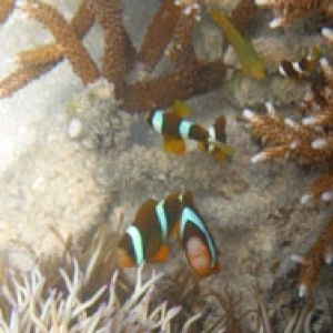 その後は、珊瑚のキレイな辺りをプカプカ浮いてみていると、ニモの仲間クマノミも発見。