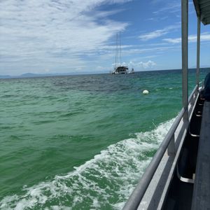 グリーン島だけでなくアウターリーフにも行きたかったのでこちらのツアーを選択しました.天候によると思いますが船は揺れるので,苦手な方は酔い止め等の対策をした方がよいと思います.グリーン島の海もきれいでしたが,そこから移動したポンツーンから見るアウターリーフは一段ときれいで,シュノーケリングで魚や珊瑚を見ることができました.アクティビティ参加中は荷物は置いたままになったり,シャワーは甲板で水のみが出るものしかなかったり,快適さを求めるというよりはアウトドアアクティビティを楽しみたい人向けかなと思いました.