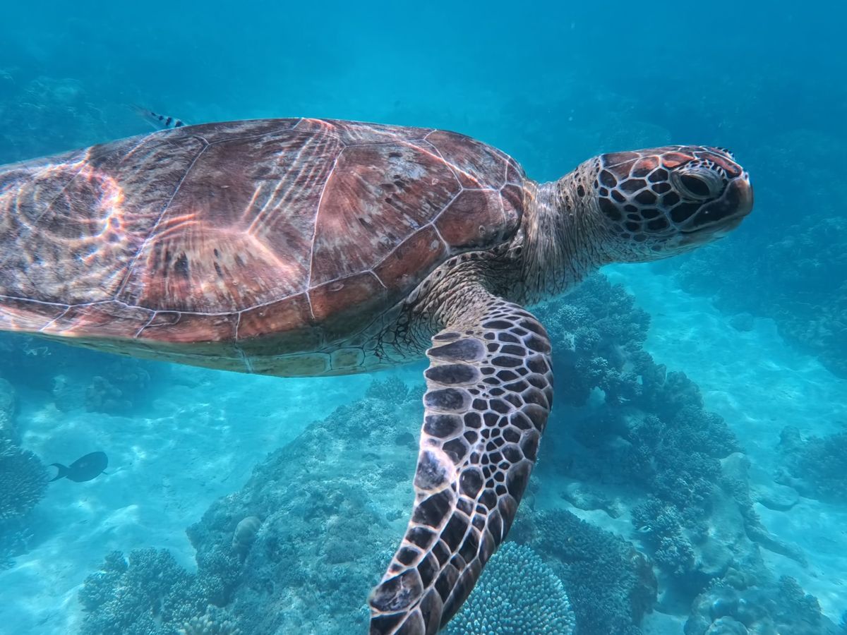 海は透明度が高いので、珊瑚や魚がとてもクリアに見えます。幸いにもウミガメに2回遭遇することが出来ました。