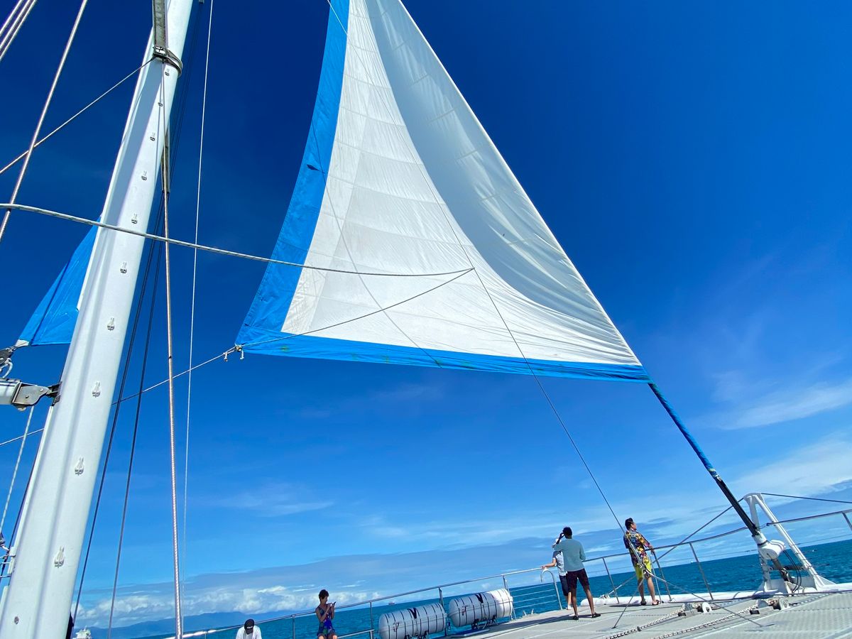 天候は時期的に雨季とのことで不安でしたが、道中の雨を乗り越えて島ではなんとか晴れました。(といってもほぼ曇り)