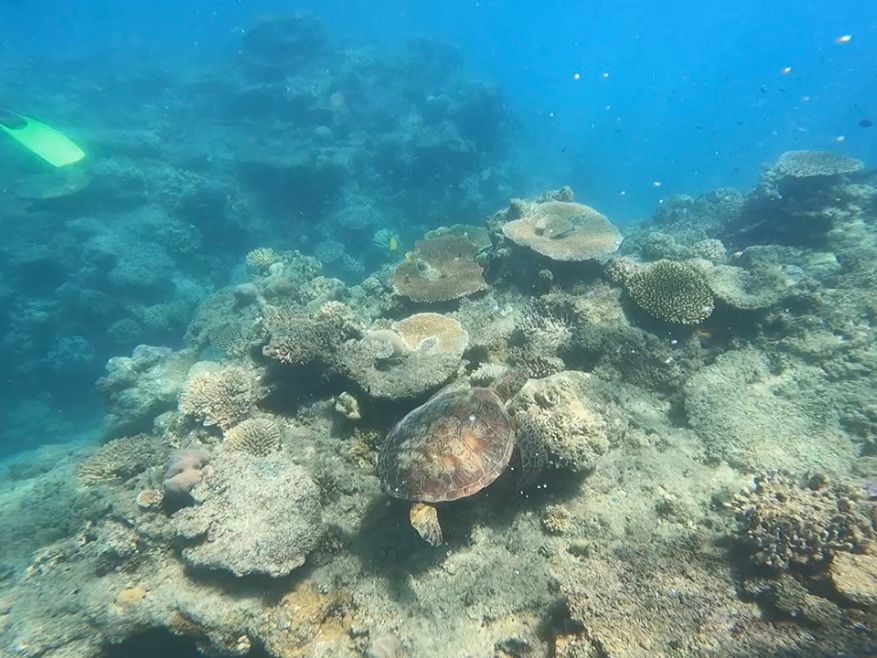 シュノーケリングではガイドさんがウミガメを探してくれたおかげで天候不良ではありましたが、ウミガメを見ることができました。