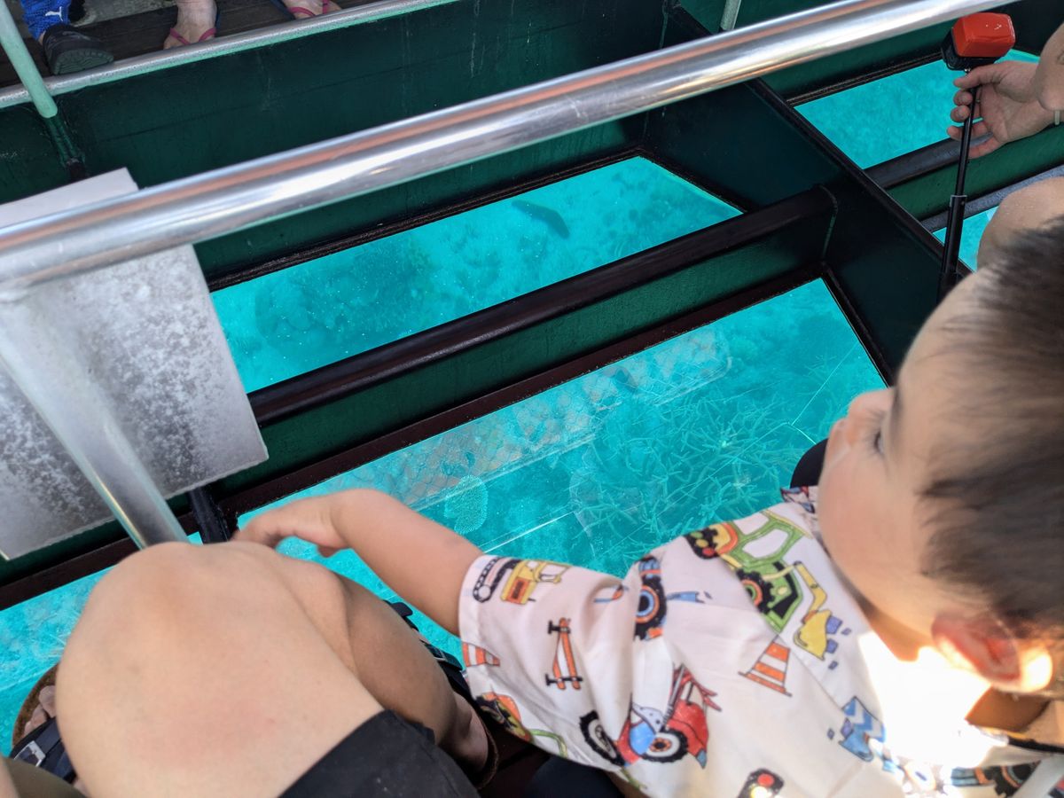 子どもが小さいためグラスボトムボートを選択しましたが、たくさん魚や珊瑚が見れて大満足です。子どもには初めての海でしたが、浅瀬での海水浴も楽しめました。