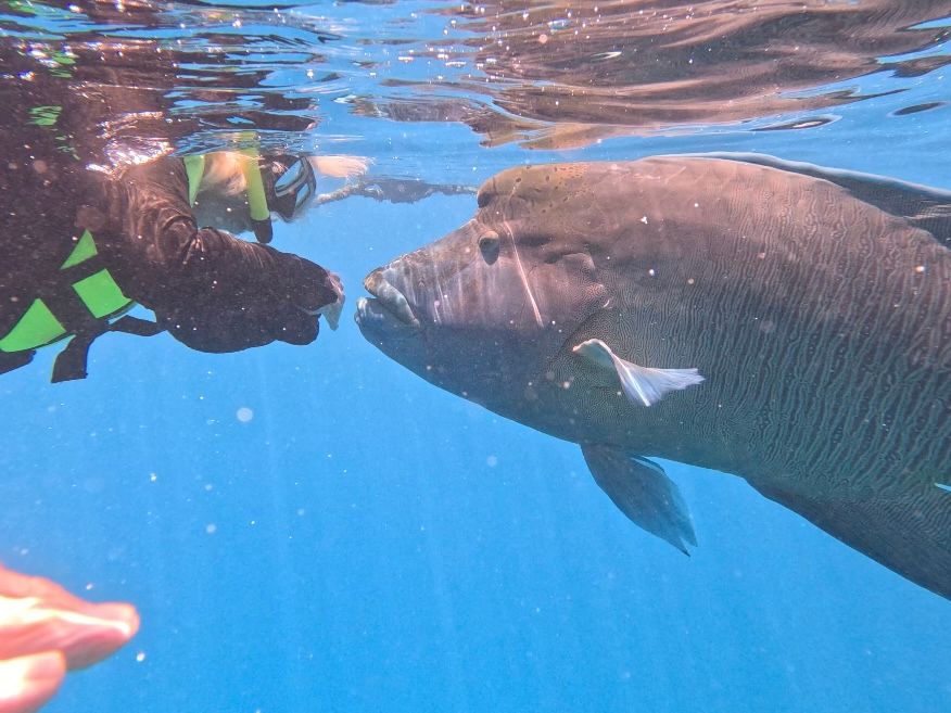 この年で慣れないスノーケリングは不安でしたが、スタッフさんのおかげでスノーケリングもでき、しかもナポレオンフィッシュをまじかでみることができました。