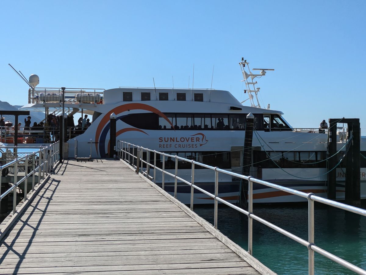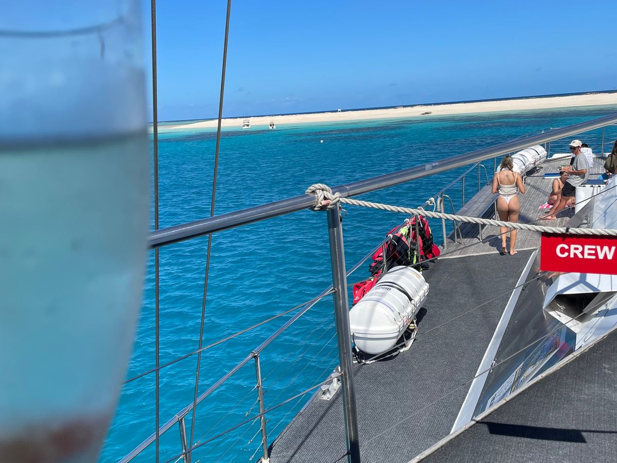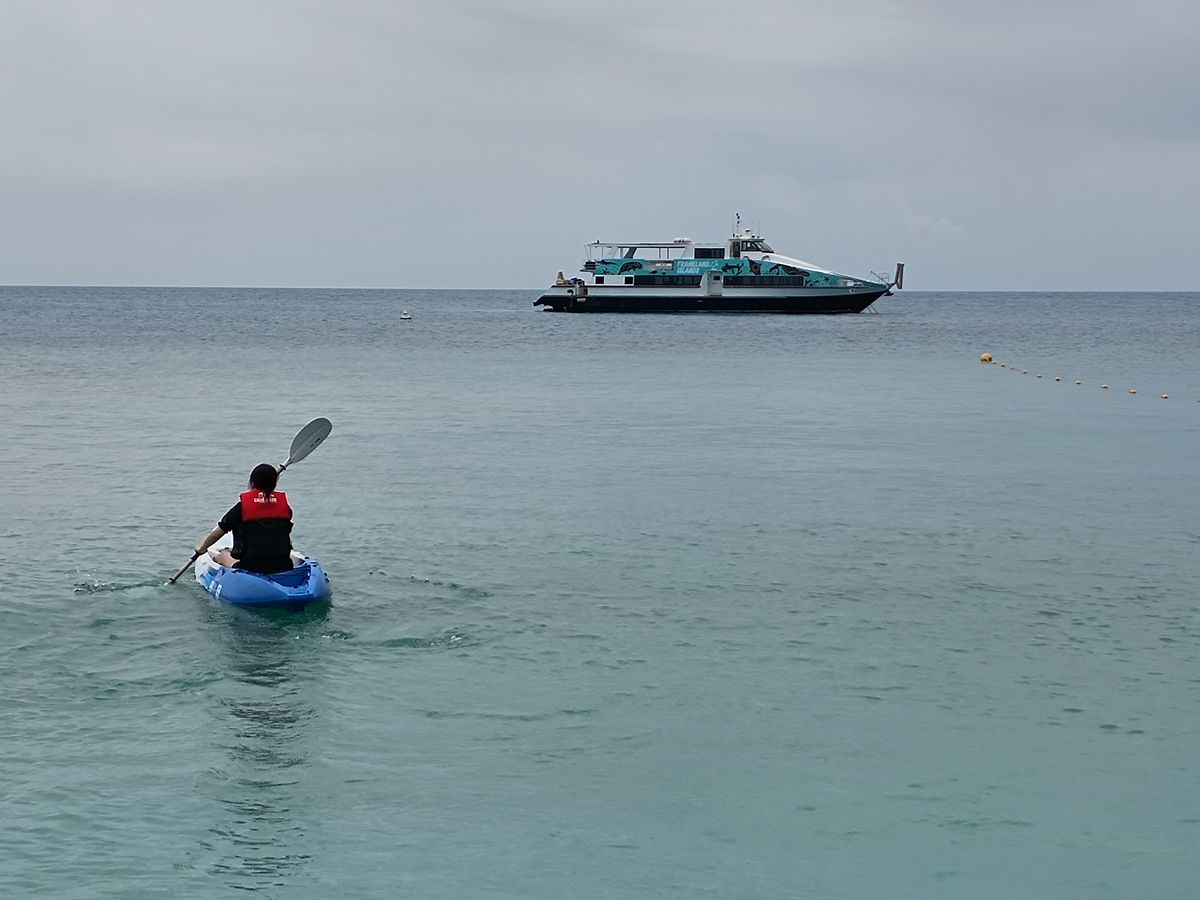 グリーン島に行く数日前から天気が荒れていたのが要因なのか行き帰りの船がすごく揺れるため、酔い止め必須。ずっとジェットコースターに乗っているような感覚。しかし、飛行機到着日に行ったこともあり、帰りの船は疲れてよく眠っていたため、酔いを感じることもなかった。行きの船とグラスボート、帰りの船はそれぞれ異なるため気をつける。前述した通り、船がよく揺れていたので外の椅子に座っていたらとても濡れました。外に座りたい人は早めに埋まってしまうので、早く行った方がいいです。最初は外に座っていて、中に移動しましたが座席は空いていたので外に座ってみて様子を見ても良いかなと思います。