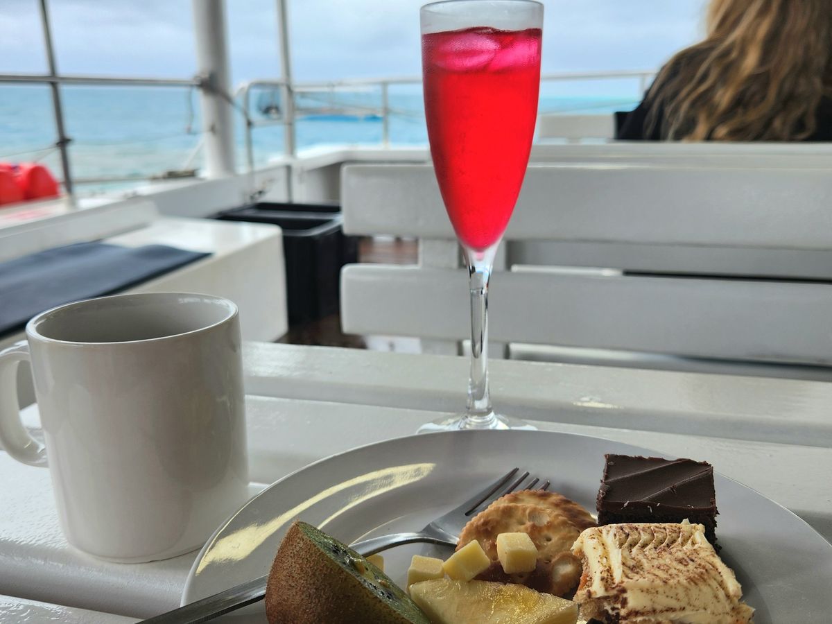 グリーン島より個人的にはよかった。ランチビュッフェやケーキandスパークリングワイン、潜水艦で綺麗な珊瑚礁と魚たち、と素敵な景色。優雅で最高でした。
