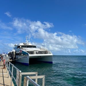 船もさほど揺れなく雨季だというのにお天気にも恵まれて海がとても青くて良かったです!こういう場所のトイレに抵抗があったのですが、綺麗に保たれていました!小さいな子供がいたので15:20ケアンズ到着でちょうどよかったです。選べるグラスボートとシュノーケルはグラスボートを選んでオプションでシュノーケルまたはダイビングを付けた方が絶対いいです!