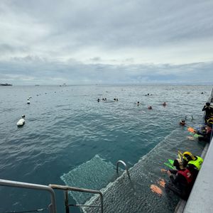船に1時間ほど乗りグリーン島まで行きますが、観光客が多く、海も濁っているので、せっかくグレートバリアリーフを堪能するならもっと沖のポイントへ出て船からシュノーケル、ダイビングを体験できるツアーをお勧めします!透明度や魚の量が全然違います!