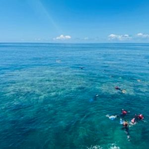 Reef Magic号によるポンツーンツアーに参加しました。滞在時間は5時間程度でシュノーケリング、昼食ビュッフェともに、満喫できるスケジュールでした。シュノーケリングでは、アウターリーフならではの、ナポレオンフィッシュやカクレクマノミ、イカの大群などを間近で見ることができました。人間と同じくらいの大きさの魚が近くまで寄ってくるため、恐怖心も感じましたが、日本では味わえない最高の時間を過ごせました。