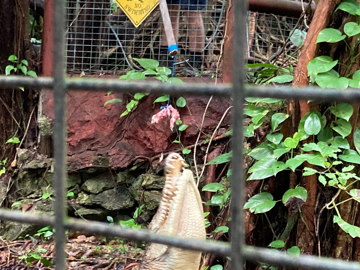 グリーン島:泳がず、島の遊歩道を写真をとりながら散策してワニの餌付けをみてちょうど2時間くらい。ワニが餌を狙ってするジャンプに小学2年生の息子は興奮。桟橋からサメを見られて、大興奮。