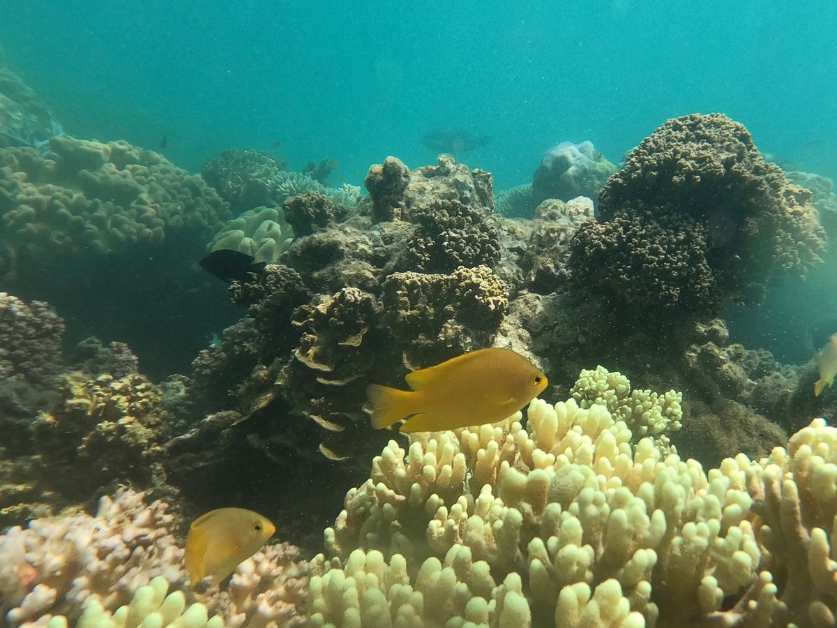 アウターリーフ:竜宮城みたい。ブイが浮いていて、泳ぎ回れるエリアが大体決まっており、そこを超えると監視しているライフセイバーの人が笛を吹いて離れすぎないように注意してくれる。エリアは広く、2時間ちょっと泳ぎ回るには十分。深くて大きな魚がいるエリアから、色とりどりのサンゴ礁やテーブルサンゴなどがある浅いエリア、その境目のサンゴ礁の崖みたいになっている場所など、地形含めて本当にきれい。当方、宮古島の八重干瀬でもシュノーケリング経験ありますが、カラフルさや種類が一番きれいだったところを2時間好きに泳ぎ回れる感じ。ナポレオンフィッシュは見られませんでしたが、ウミガメが来ていて、しばらく一緒に泳ぎました。監視員スタッフに日本人が1名いて、おすすめポイントなどいろいろ聞けました。