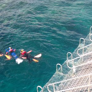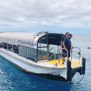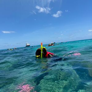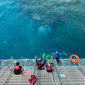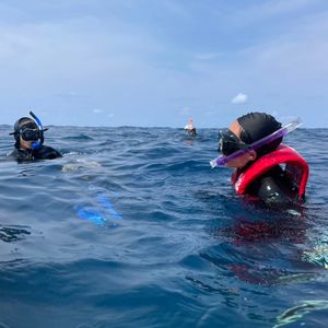 ポンツーンでのシュノーケリングをメインに参加しました!到着して初めてみる透明度の高い青い海にびっくり。シュノーケリングとライフベストとヒレをかりていざ海に入るのは緊張の一瞬でしたが、入って珊瑚礁とカラフルな魚たちを目の前にして夢中で泳いでいました。泳ぐ範囲も決められていて、監視員の方も交代で待機しているので安心でした。