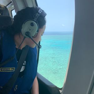 またポンツーンからのヘリコプター遊覧ツアーに参加し、ポンツーンそばの海上ヘリポートから飛び立ち上空から壮大なサンゴ礁を見ることができました。