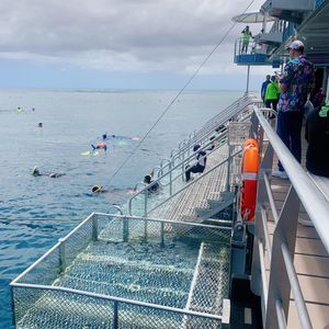 11月11日にアウターリーフツアーに参加しました。朝9時出港だったのでゆっくり準備が出来ました。乗船するとスタッフが丁寧にアクティビティーについて説明してくれました。ケアンズ港から約1時間半途中フィッツロイ島の横を通り、アウターリーフポンツーンに到着。スタッフがスティンガースーツを選んでくれ用具をつけて、シュノーケリング開始。ポンツーンから泳ぎ出すとすぐに美しい珊瑚礁と色とりどりの魚達が居ました。珊瑚礁に触れないように泳いでいたら、ナポレオンフィッシュがまるで我々に挨拶するかのように、フレンドリーに近付いてきました。一頻り珊瑚礁の周りをシュノーケリングし、ポンツーンに上がり美味しい昼食をとりました。充分に時間があったので、魚へ餌やりショーやグラスボートで珊瑚礁を回りました。ポンツーンに戻ってコーヒーとデニッシュを頂き、他の参加者と楽しい会話をすることが出来ました。帰りの船中では心地よく居眠りをしてしまい、いつの間にかケアンズ港に着いていました。下船する時スタッフ全員でお見送りしてくれました。私達はポンツーンでのシュノーケリングは3回目でしたが、機会があればまたツアーに参加したいと思います。(日本語のアクチビティ同意書が有ると良いと思います。)