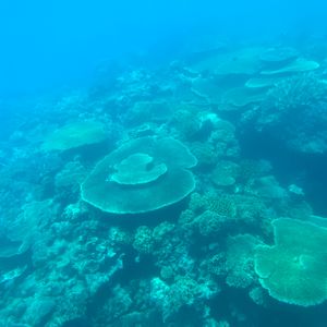シュノーケルをしていますと、ウミガメや熱帯魚やマンタが見れました。