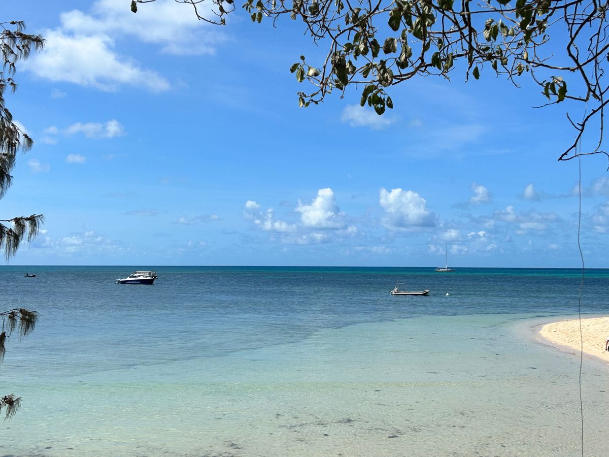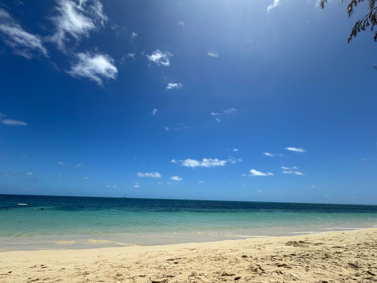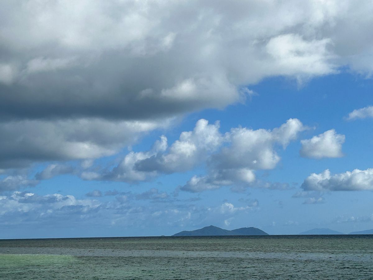 ノーマンビー島に近付くにつれ、雨が止み、曇り空へかわり、うっすらと光が差してきました。島に到着した時は海の綺麗さに驚きましたが、時間がたつにつれお天気はどんどん回復していき、お昼頃には青空も見えて海は透明度を増し到着したときより何倍も綺麗なブルーに!