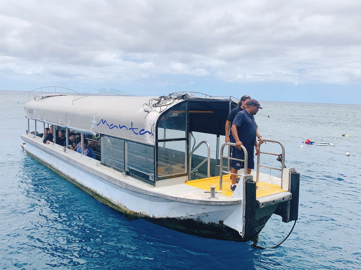 このツアーはシュノーケリングかグラスボートかを選択できますが、私はグラスボートを予約しました。時間になったら桟橋に止まっている大きな船にまず行き、そこからグラスボートに乗り移ります。30分ほど周遊してまた桟橋に戻ってきます。たくさんの魚と珊瑚が見え、感動しました!